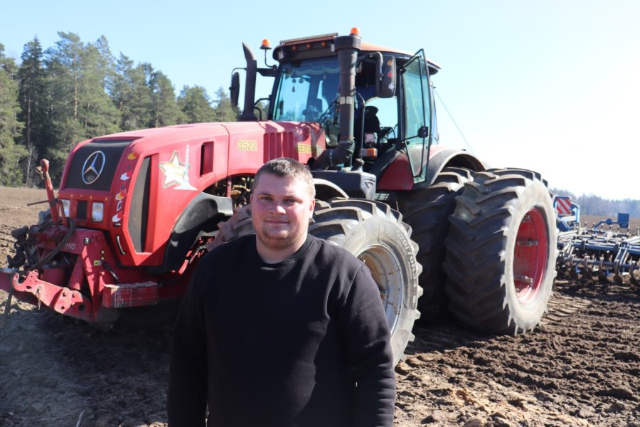 С посевным агрегатом здесь умело управляется механизатор Виталий Филиппович. В хозяйстве он работает уже много лет, человек опытный и ответственный в любом деле. Вот и доверили ему этот ответственный участок. А вот помощником оказался новичок – Александр Соболь.