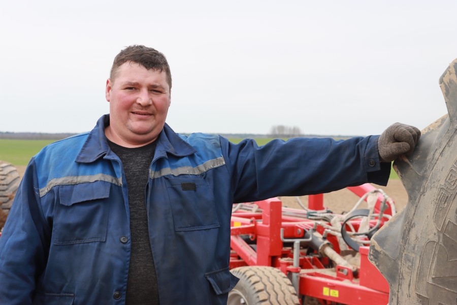 На следующем поле встречаем Николая Соболя. Он занят закрытием влаги и подготовкой почвы.