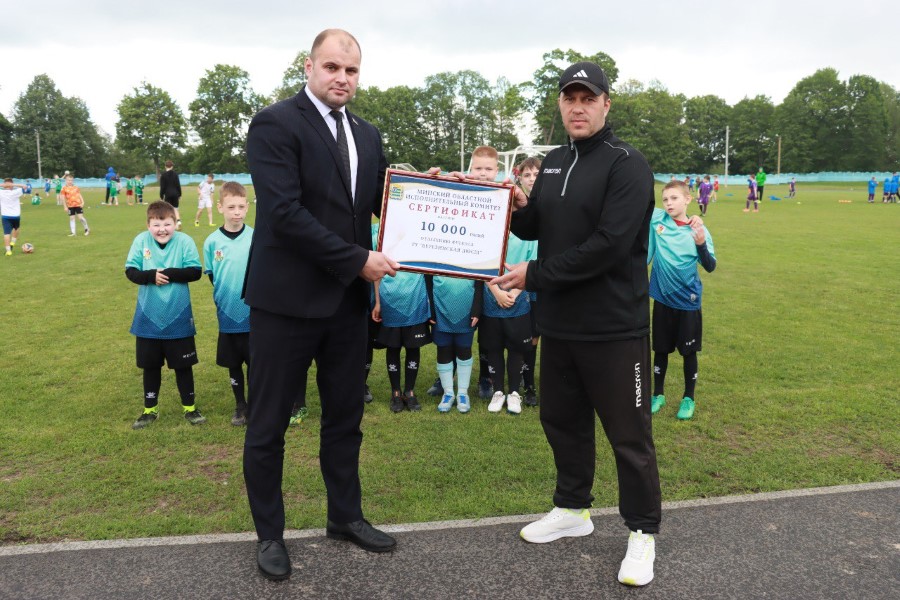 Евгений Васильевич вручил сертификат Минского областного исполнительного комитета на сумму 10 тысяч белорусских рублей отделению футбола Березинской детско-юношеской спортивной школы.