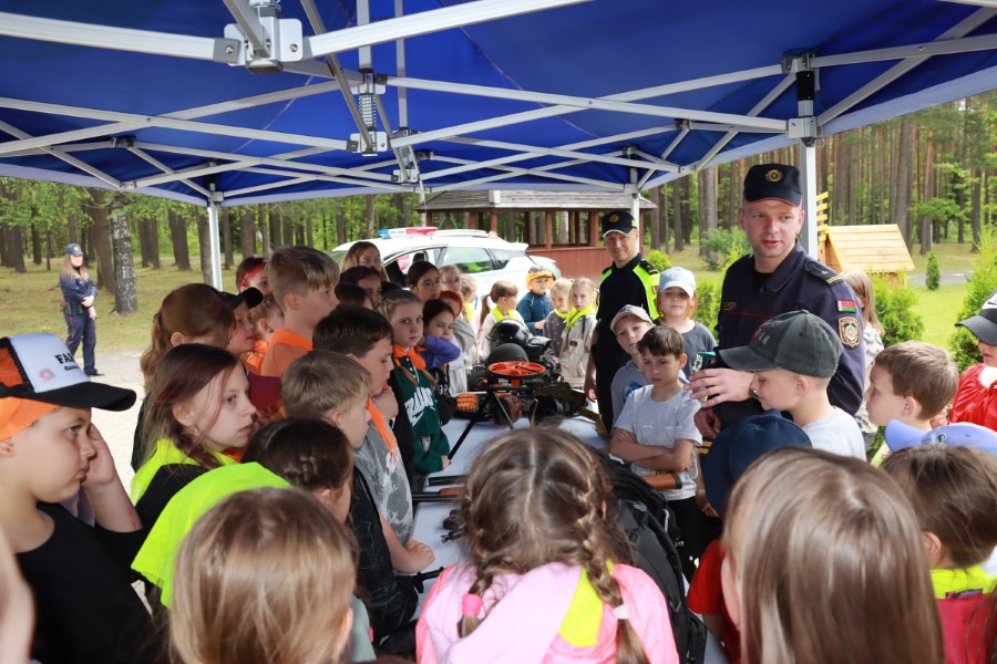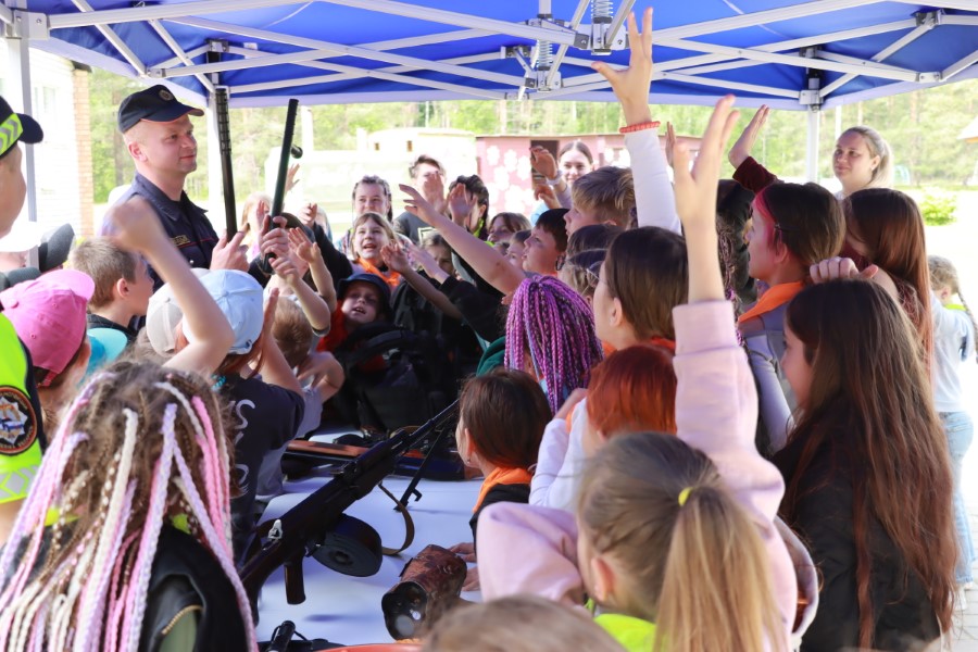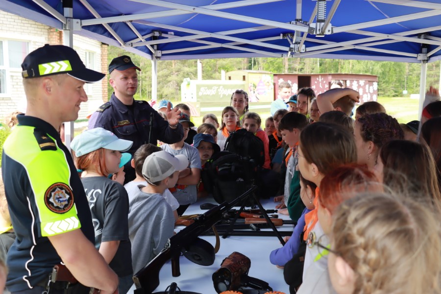 Дальше ребят ожидала интересная интерактивная площадка, организованная Березинским РОВД. Милиционеры рассказывали об оружии, которым владеют стражи правопорядка и о правилах дорожного движения и задавали тематические вопросы. А за правильные ответы раздавали сладкие призы и разрешали посидеть за рулём и посигналить в автомобиле Госавтоинспекции.