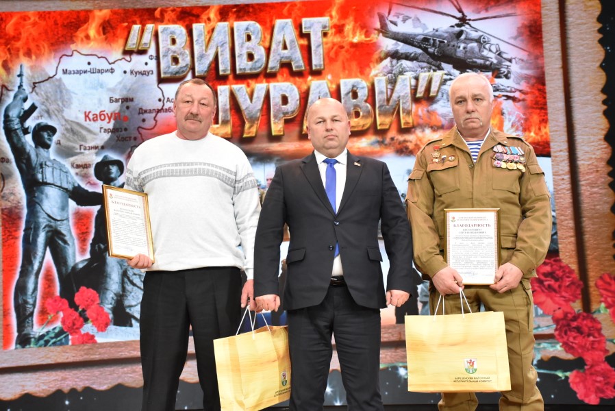 – Уважаемые березинцы, воины-интернационалисты! Тревожные вызовы современности ежедневно напоминают нам о ценности мира и придают все большую значимость сохранению памяти о мужестве и героизме наших военнослужащих. Ежегодно в День памяти воинов-афганцев мы отдаем дань уважения и благодарности военнослужащим, выполнявшим воинский долг в горячих точках. Все дальше в историю уходит эхо событий той войны. Прошло 37 лет, но мы помним и тот день, и тех, кто не вернулся. Из 70 участников войны – уроженцев и жителей Березинского района двое погибли: Владимир Шумский и Сергей Карканица. Их имена не забыты. Мы помним и чтим совершенный ими подвиг. Сейчас в Березинском районе проживает 42 бывших военнослужащих, проходивших службу в Афганистане. Вы свято бережете ценности боевого братства и добросовестно трудитесь в организациях района. Любая война оставляет в сердцах и душах людей глубокий след, накладывает неизгладимый отпечаток на всю жизнь. Память о пережитом передается из поколения в поколение. Ветераны Великой Отечественной войны, ветераны войны в Афганистане, участники локальных войн и конфликтов – это живой пример ответственного отношения к чувству долга перед своей страной. Мы признательны вам за активную жизненную позицию, за тот вклад, который вы вносите в патриотическое воспитание молодежи. Мы всегда будем помнить о ваших подвигах, сохранять в сердцах память о погибших бойцах и передавать ее подрастающему поколению. Желаю вам крепкого здоровья, бодрости духа, успехов, благополучия и мира!