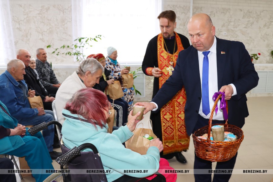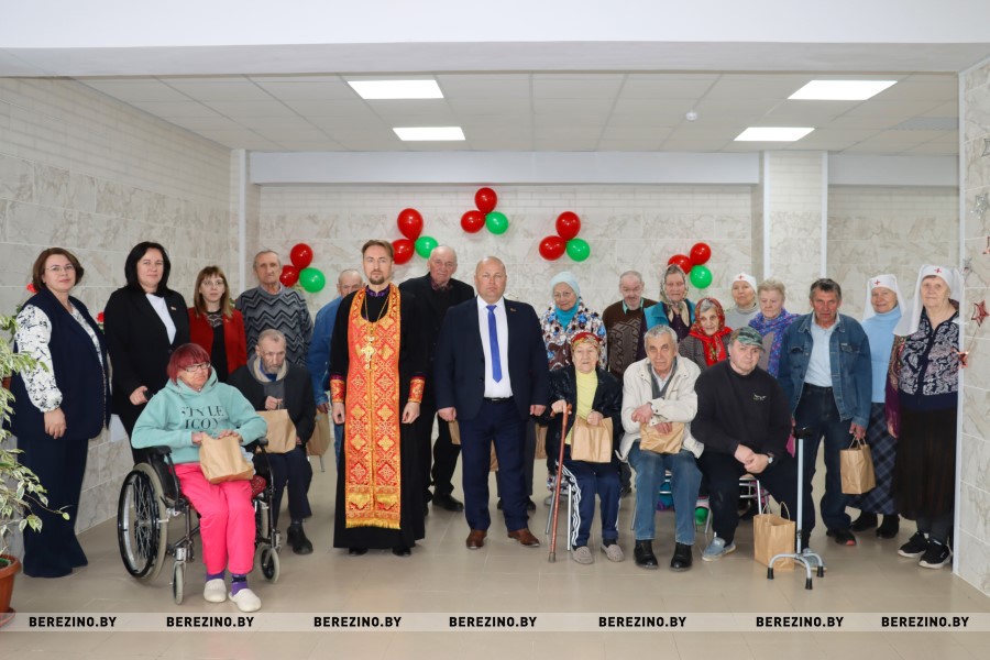 В Березинском районе гости во главе с председателем райисполкома Андреем Соколовским, заместителем председателя Алесей Титовой, начальником управления по труду, занятости и социальной защите Вероникой Джигеро, директором ТЦСОН Еленой Желудевой и настоятелем храма отцом Василием Васильковым посетила отделение круглосуточного пребывания для граждан пожилого возраста и инвалидов в деревне Дулебы.