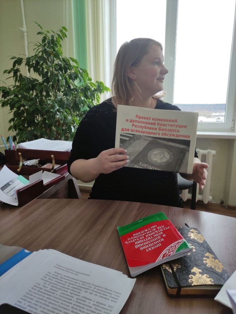 Главный редактор районной газеты Юлия Букель рассказала про газету, поблагодарила за подписку (практически все собравшиеся — подписчики газеты) и с Проектом Конституции познакомились на страницах газеты.