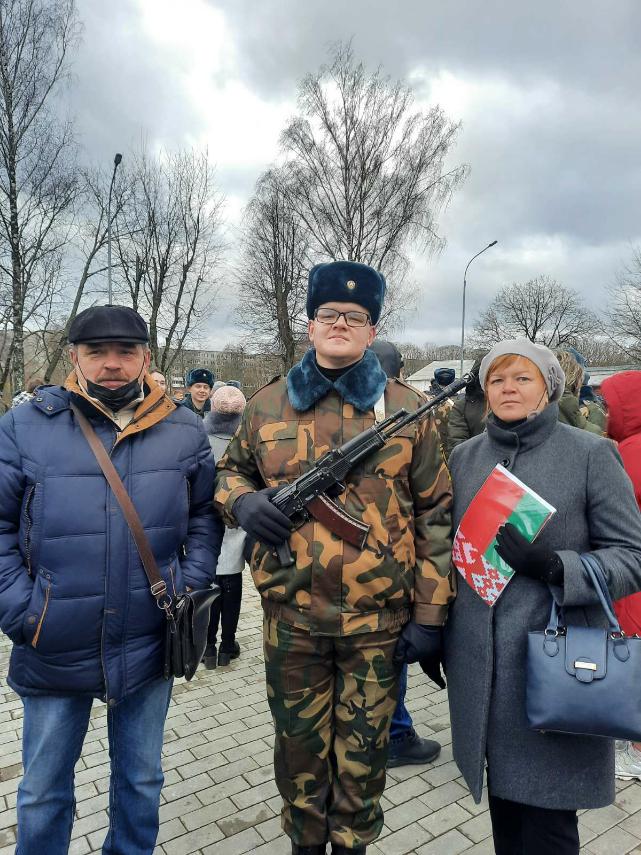 Вось і Святала Варуева разам з мужам не змаглі прапусціць такі ўрачысты момант у жыцці іх сыночка Сяргея, прыехалі да яго ў воінскую часть у горад Валожын і сталі сведкамі гэтага хвалюючага мерапрыемства.
