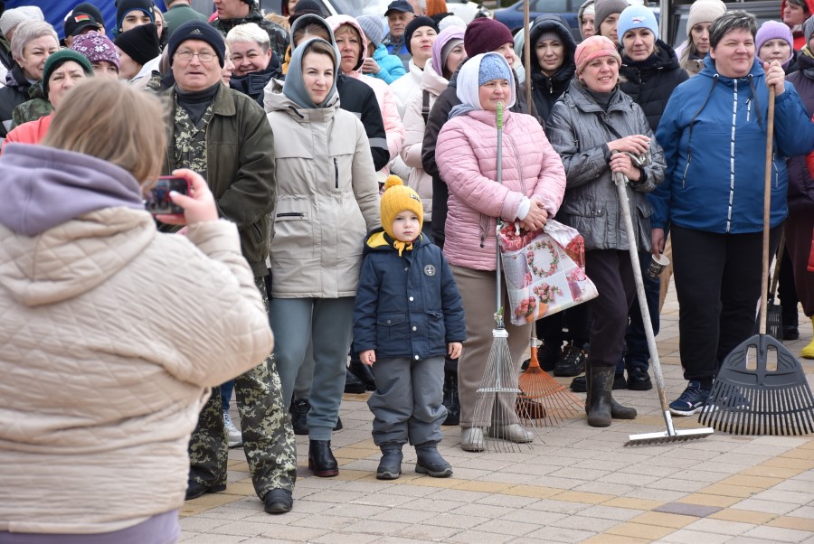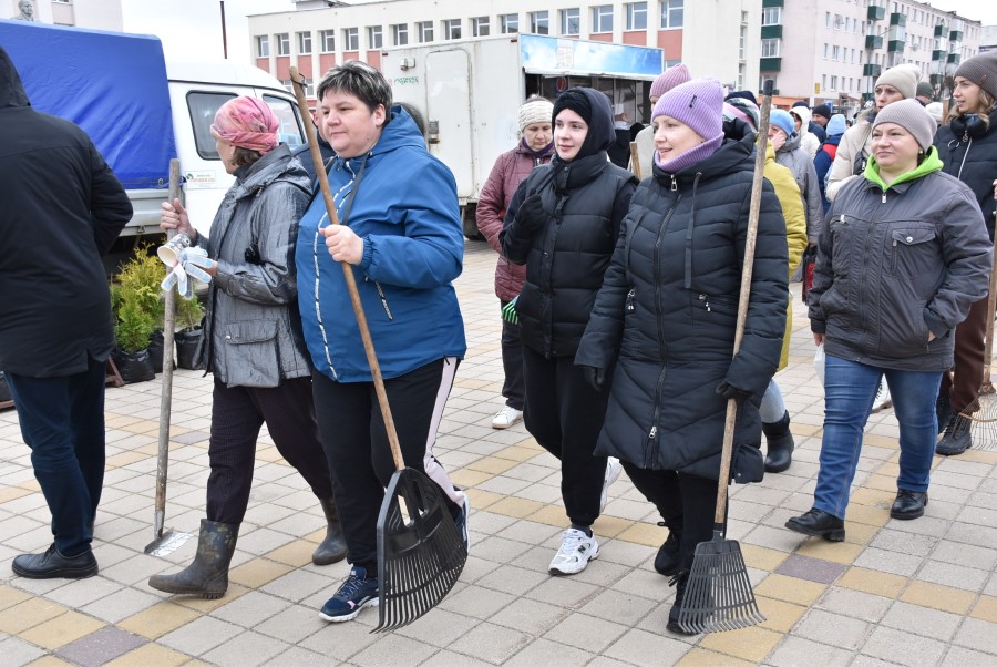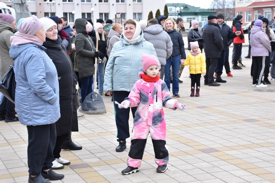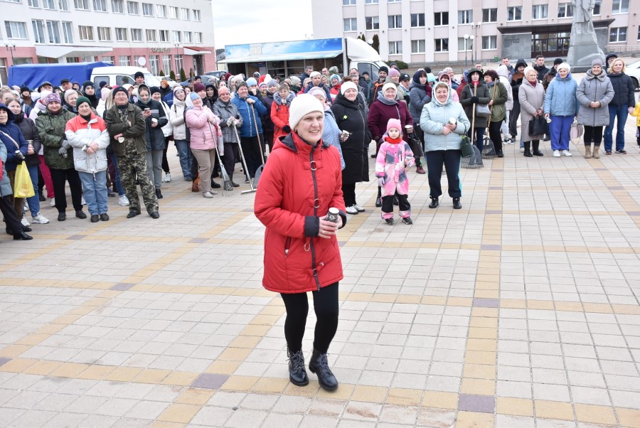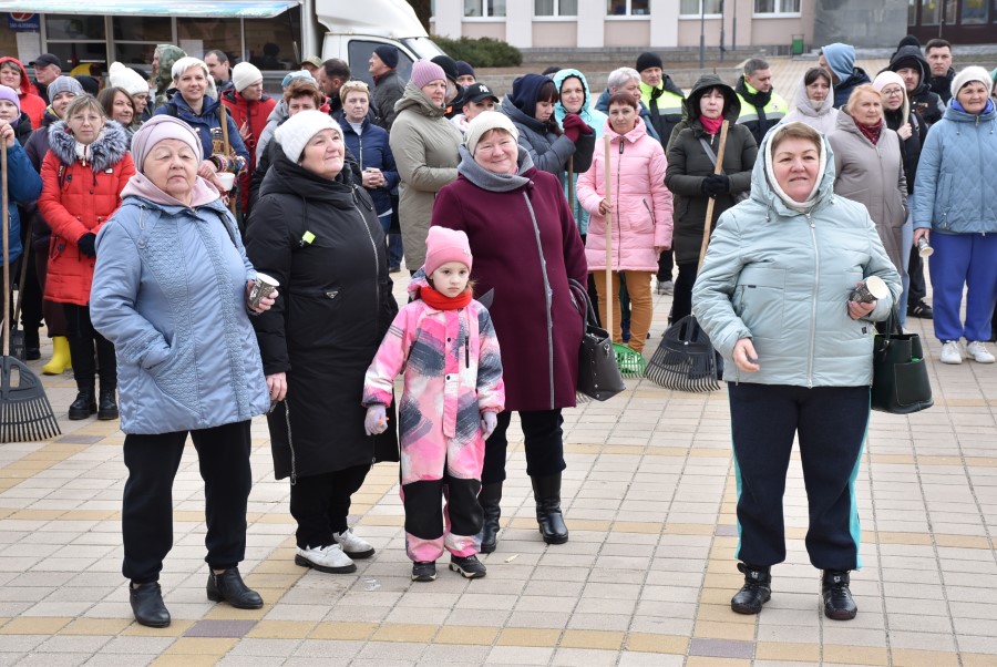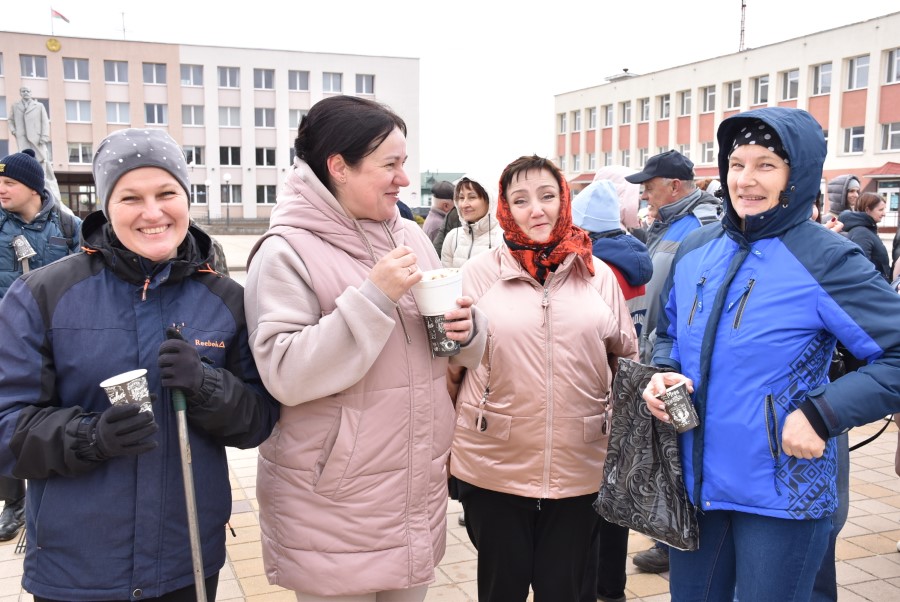 Собравшись на центральной площади города в ожидании объявления официального начала субботника, многие березинцы, уже вооруженные граблями, метлами и иным инструментом, имели возможность не только пообщаться между собой и поделиться позитивным настроением.