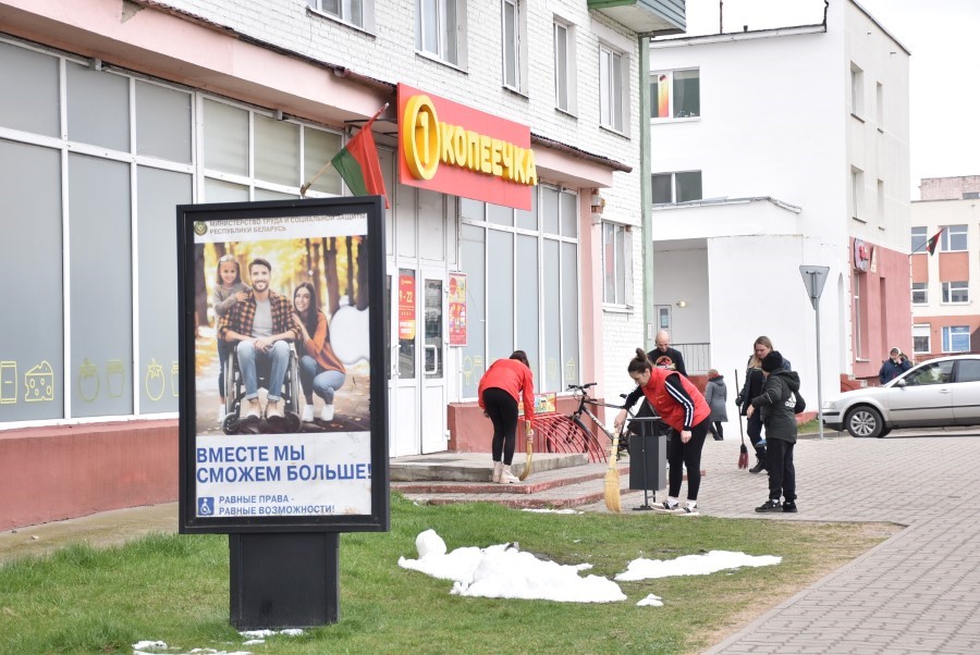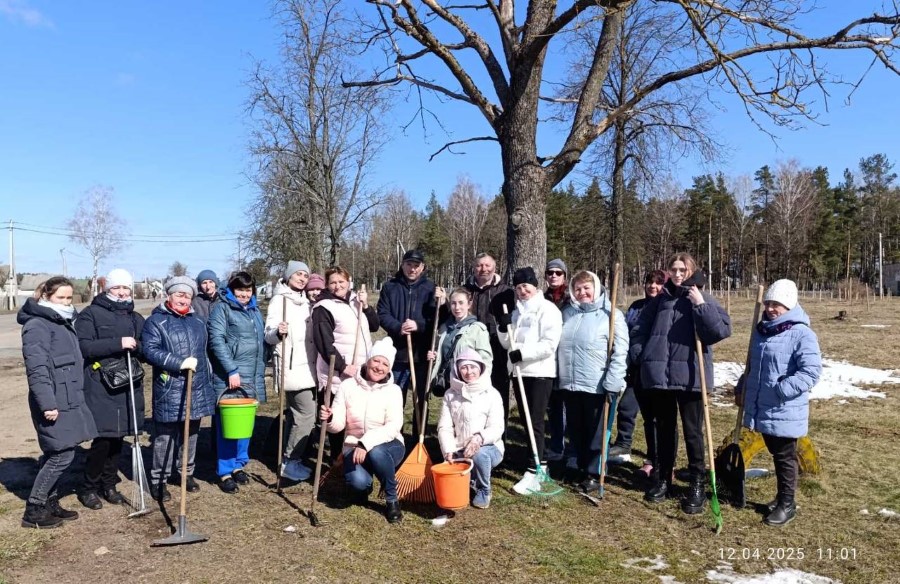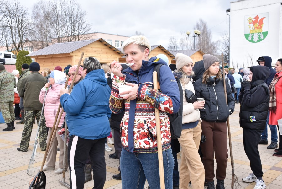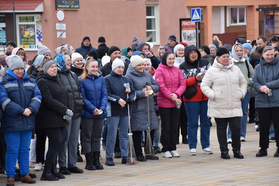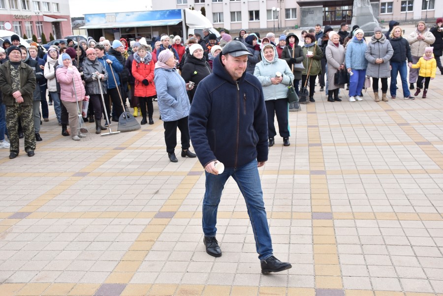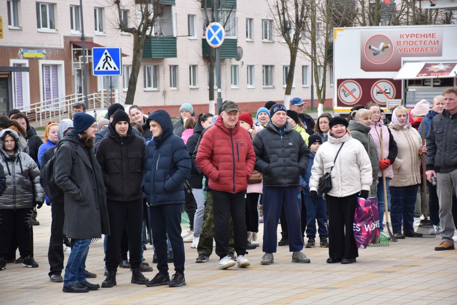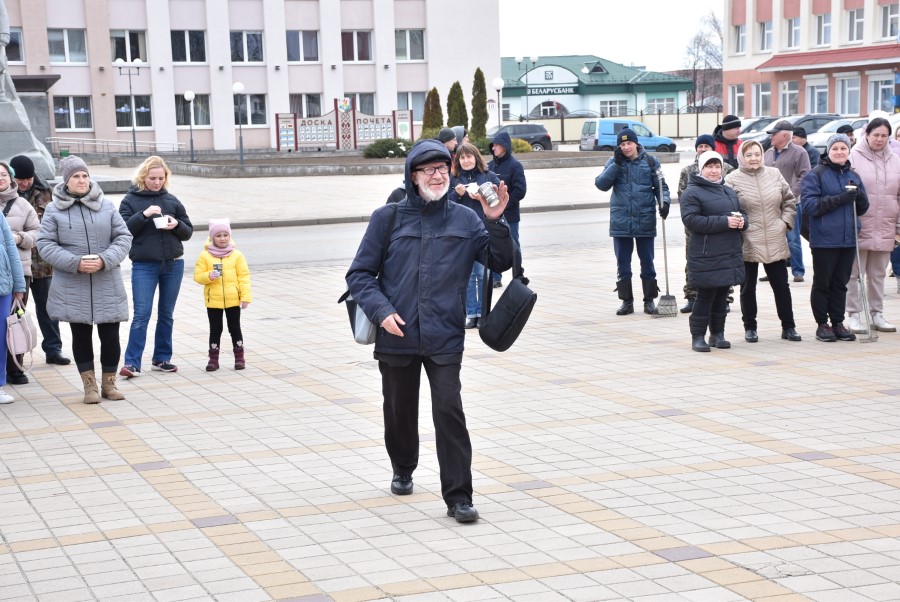Собравшись на центральной площади города в ожидании объявления официального начала субботника, многие березинцы, уже вооруженные граблями, метлами и иным инструментом, имели возможность не только пообщаться между собой и поделиться позитивным настроением.