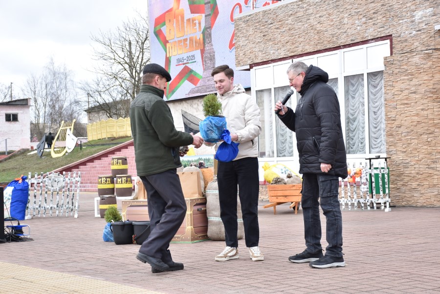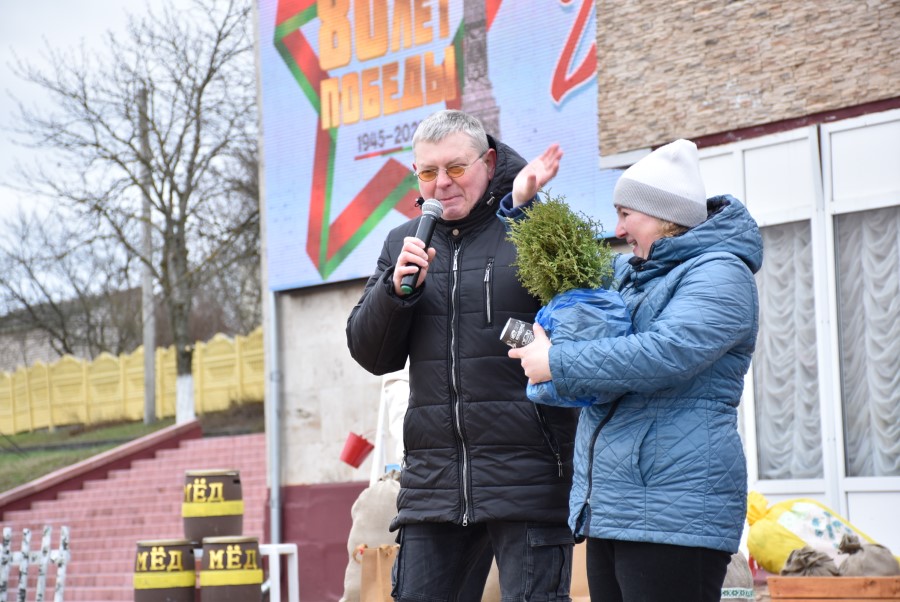 Как всегда на «ура» и громкими аплодисментами приветствовала площадь каждого обладателя очередного приза. А разыгрывалось их немало. Это были и разные вкусности, и саженцы молодых туй, а также спецовка и отдельные принадлежности для проведения ремонта.