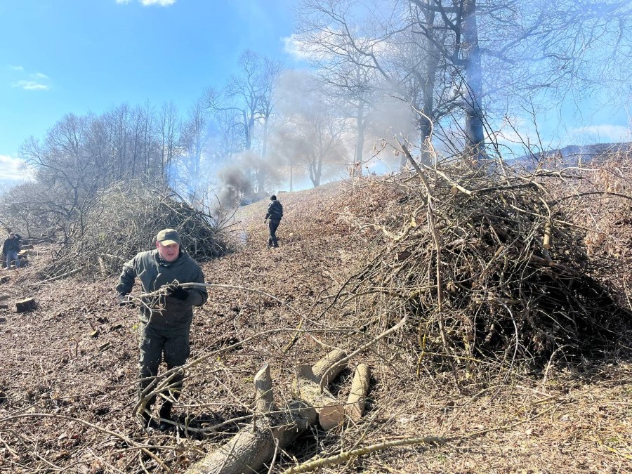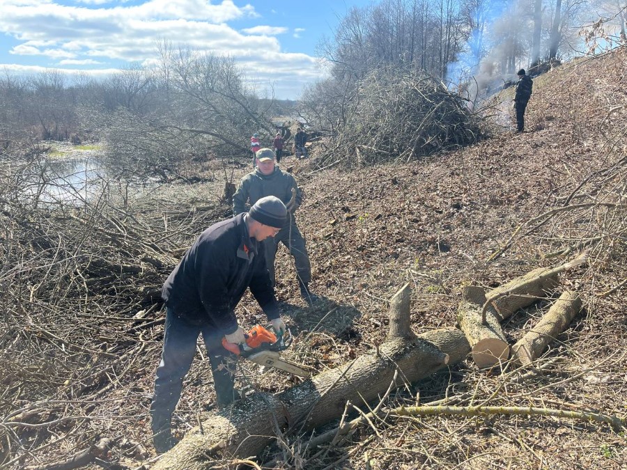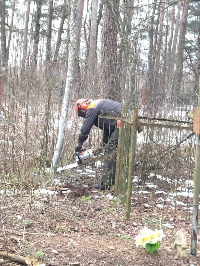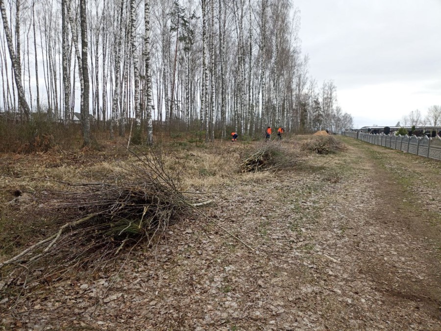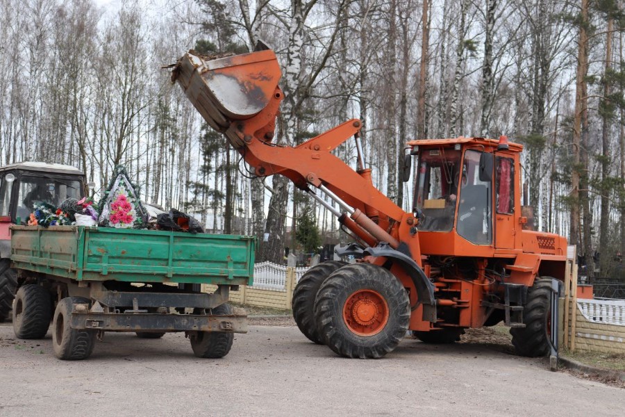 Еще одна группа работников ЖКХ (а трудовой десант организации был довольно массовым, его членов можно было увидеть и на ряде других объектов) трудилась на уборке территории городского кладбища на ул. М. Романович. Собранный мусор едва умещался на прицепе трактора. За оградой кладбища велась также обкоска прилегающей территории и вырубка мелкого кустарника. Что ж, к предстоящей радунице здесь порядок наведен. Аналогичная картина и на кладбище по ул. Мультана. Вокруг него также нет мусора. Зато появились небольшие желтые пятачки из привезенного к празднику свежего песка. Кстати, наведением порядка на гражданских кладбищах представители многих городских организаций занимались и в сельской местности. Значительно посвежел и созданный недавно небольшой парк, который граничит с территорией кладбища.