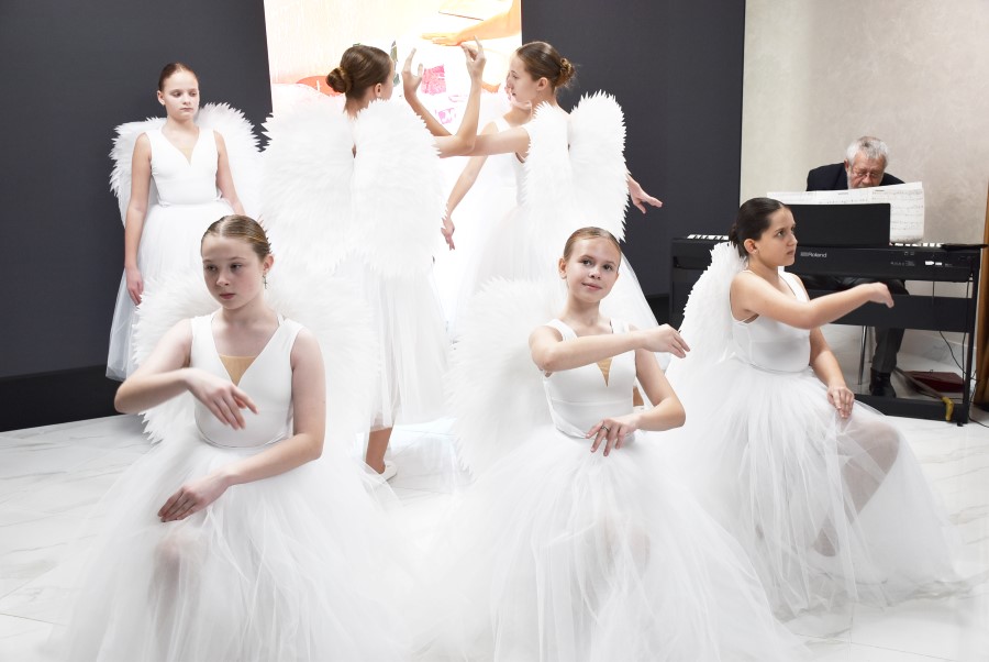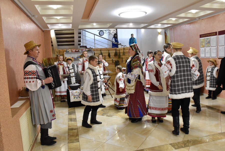 В фойе первого этажа Березинского районного центра культуры гостей праздника встречал народный семейный обрядово-игровой коллектив “Радзіна” и образцовый фольклорный детский коллектив “Валошкі”.