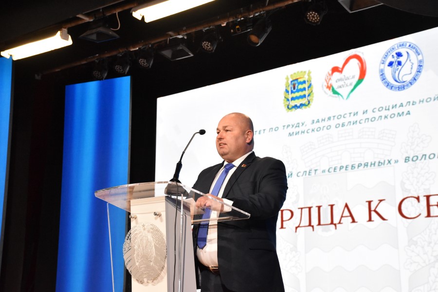 - Добрый день, уважаемые присутствующие! Я приветствую всех участников самого душевного мероприятия! Убеждён, что место встречи выбрано неслучайно. Слёт волонтёров «От сердца к сердцу» в буквальном смысле проводится в самом сердечном Березинском районе. Во-первых, у нас в городе множество конструкций в виде сердец. Это наш символ гостеприимства. Во-вторых, березинцы действительно открыты, милосердны и доброжелательны. А в третьих, вам просто не передать как мы любим принимать гостей! Это новый тембр и подготовка, которые активизируют и заряжают, наполняют нас яркими эмоциями, поддерживают сердцебиение и ритм района. Сегодня этот ритм – вы, ваши дела, их важность и ценность. Красной нитью всего слёта волонтёров проходит категория «серебряный» возраст. У меня есть своё определение этому словосочетанию, в котором я убеждаюсь каждый день. Сегодня мы живём в бешеном темпе, новое время, новые подходы в работе, современные технологии и искусственный интеллект, всё стремительно, однодневно и зыбко. Но по прежнему вы, все сидящие в этом зале, являетесь гарантом нашей стабильности, надёжности и поддержки. Вы и сегодня в одном строю с нами: на производстве и в полях, в школах и садах, сохранении традиций, своих делах и волонтёрском движении. Вы, люди «серебряного» возраста, по прежнему наша опора во всех начинаниях, и как никогда нужны нам и словом, и делом. Мы благодарим организаторов слёта за то, что именно наш Березинский район стал местом скопления такого количества мудрости, милосердия и любви. Вот так, собираясь вместе, из разных уголков нашей страны, мы демонстрируем огромную силу единства поколений, которое мотивирует нас всех на достижение самых смелых целей и планов. Березинский район сегодня точно зарядится этой силой, энергией, теплотой общения, ощущением уюта, тепла и любви. Этого и хочется пожелать всем участникам слёта. Пусть масштабы и границы волонтёрского проекта растут, а добрые дела наполняют каждый уголок нашей прекрасной страны – страны мира и добра!