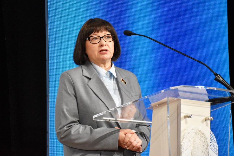 С приветственным словом к микрофону поднялась председатель комитета по труду, занятости и социальной защите Минского облисполкома, член Совета Республики Национального собрания Республики Беларусь, председатель Минской областной организации общественного объединения «Белорусский союз женщин» Тамара Красовская.