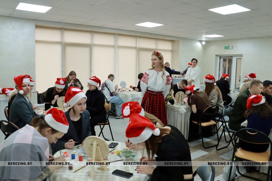 Молодых специалистов приветствуют в районном центре ремесел. Здесь они разрисовывают новогодние елочные игрушки.