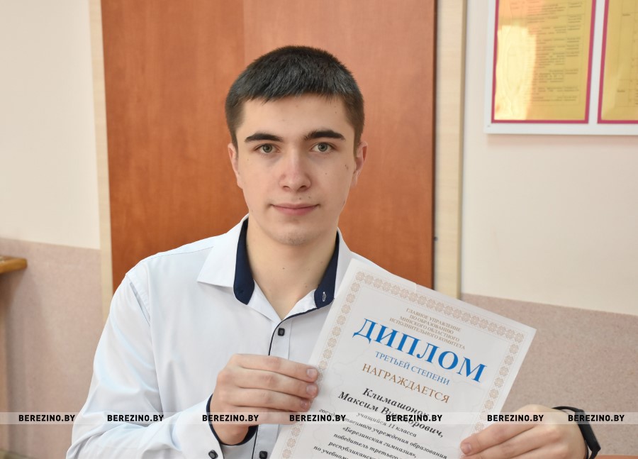 Еще два представителя Березинской гимназии вернулись с областной олимпиады с дипломами III степени. Это юный физик Тихон Инякин (педагог Марина Игнатьевна Кустова) и любитель астрономии Максим Климашонок (педагог Анна Сергеевна Измер).