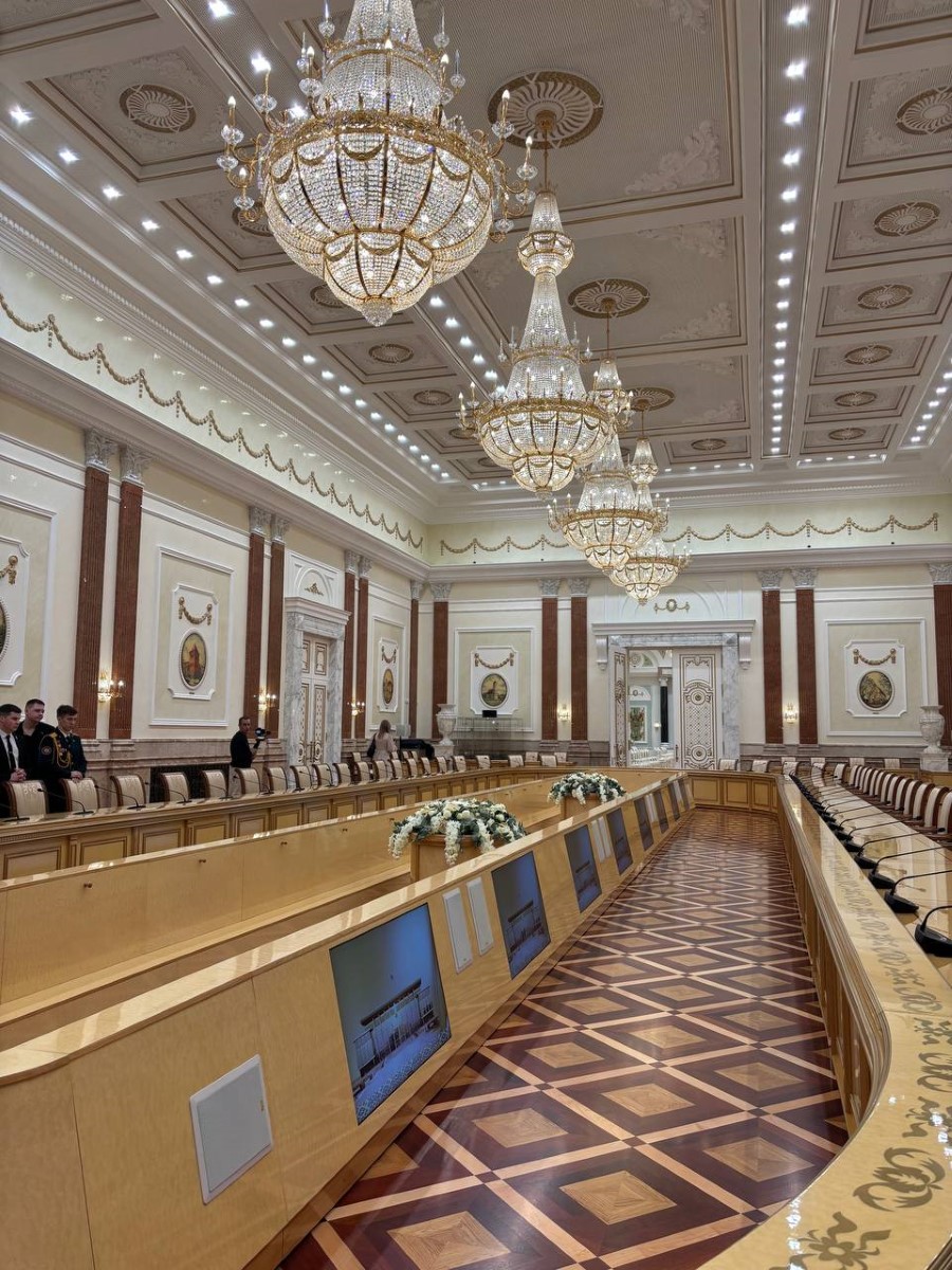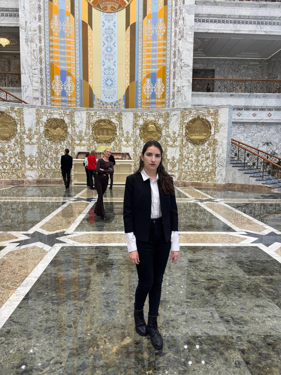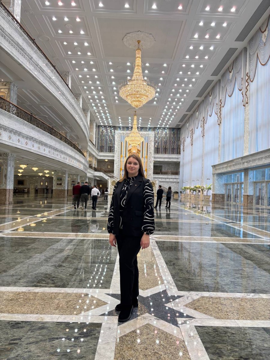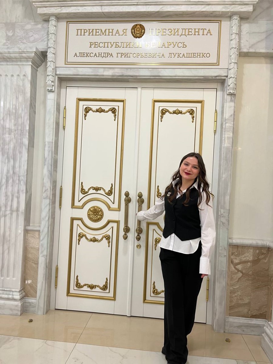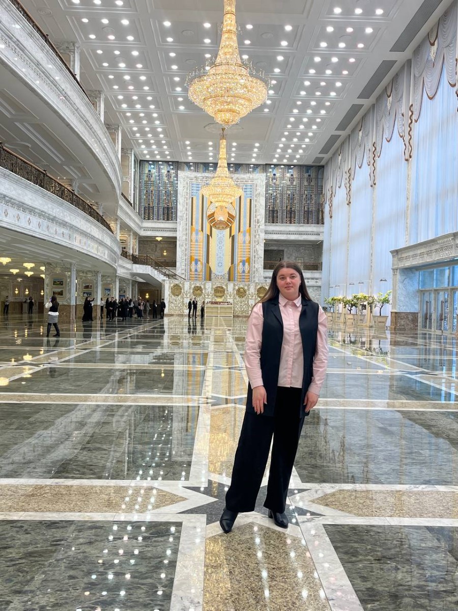 Во время экскурсии пресс-секретарь Президента Республики Беларусь Наталья Эйсмонт поделилась с посетителями историей Дворца Независимости, а также рассказала много другой интересной информации. К примеру, многие даже не предполагали, что зал торжественных церемоний является самым большим в Беларуси, а диаметр самого большого герба во дворце – 5,5 метров (его вес достигает почти 1,5 тонны).