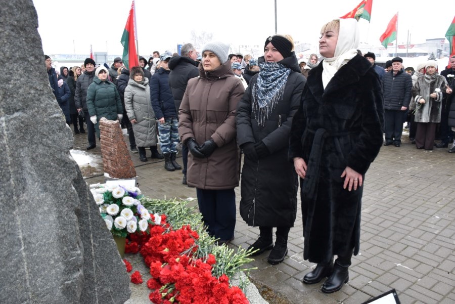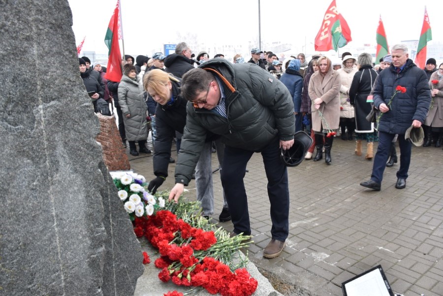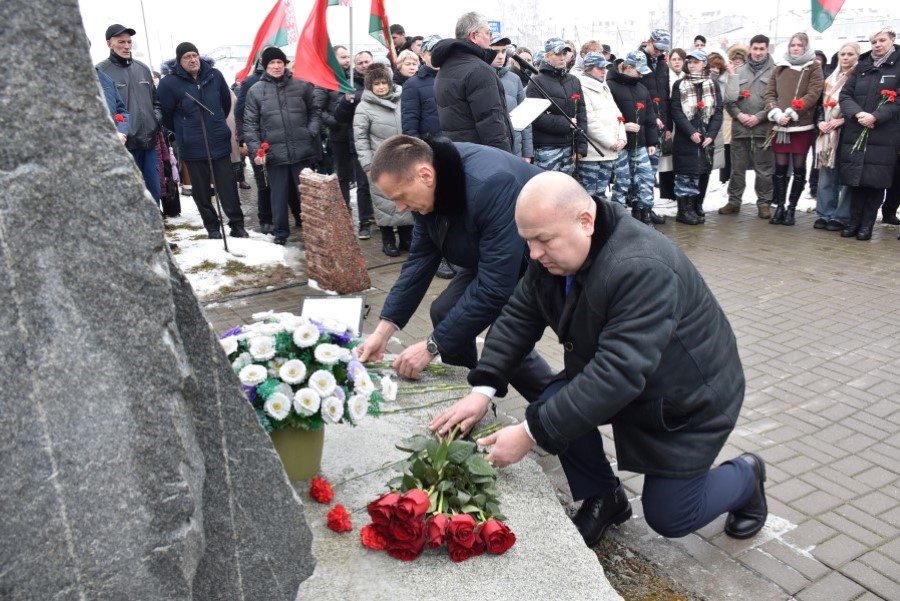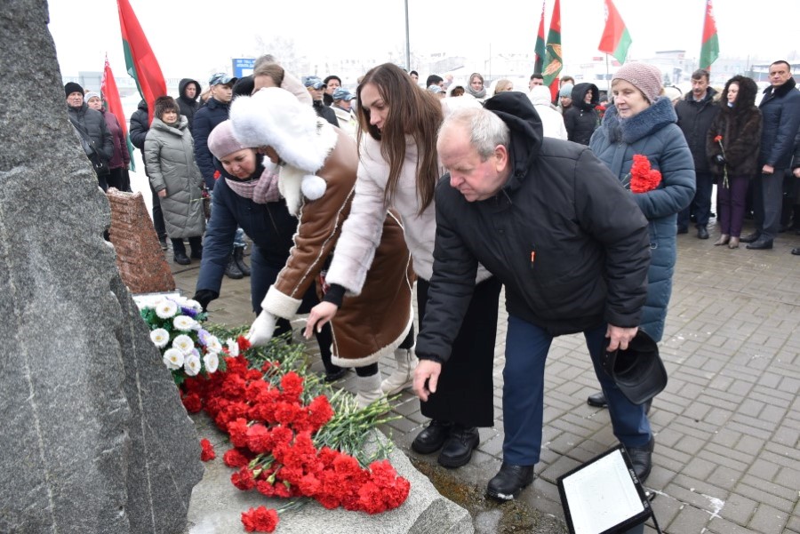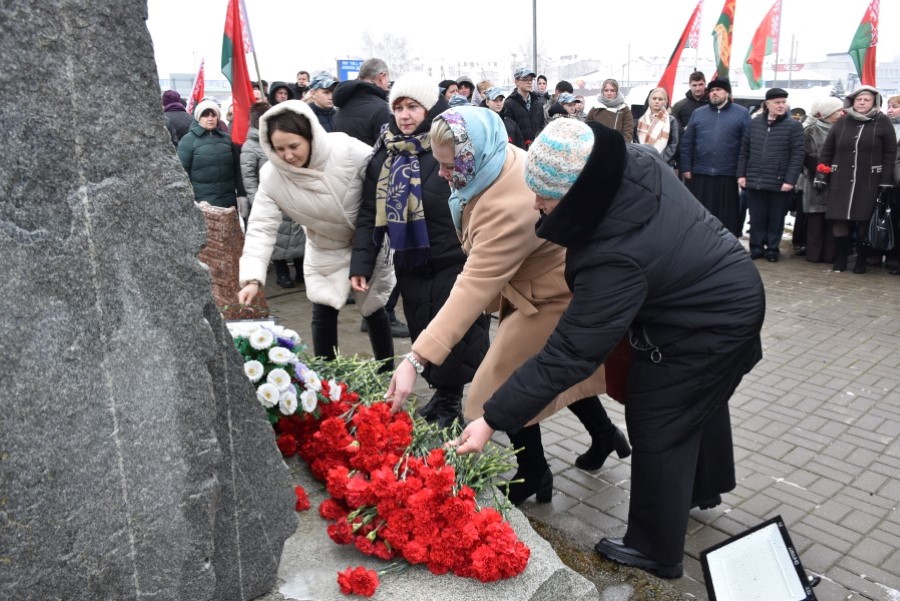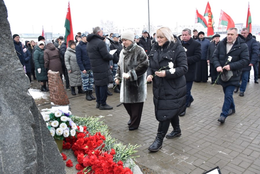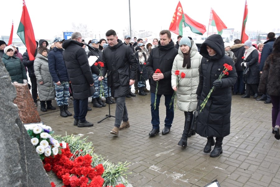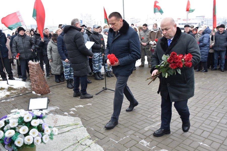 Глава района Андрей Соколовский, председатель районного Совета депутатов Владимир Трухан, представители районной власти , силового блока, общественных организаций, трудовых коллективов, молодёжи возложили цветы у памятного знака.