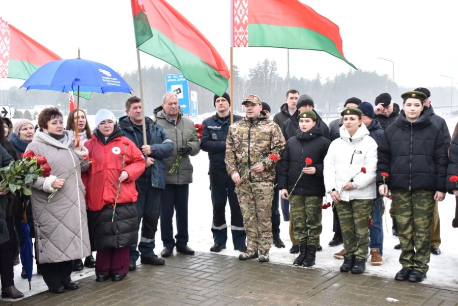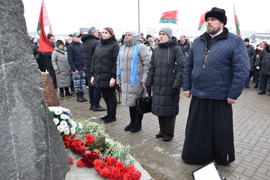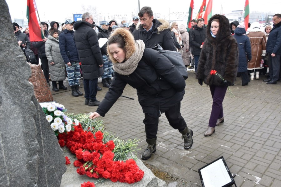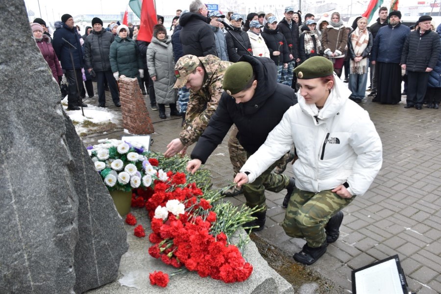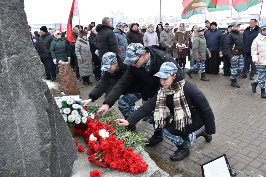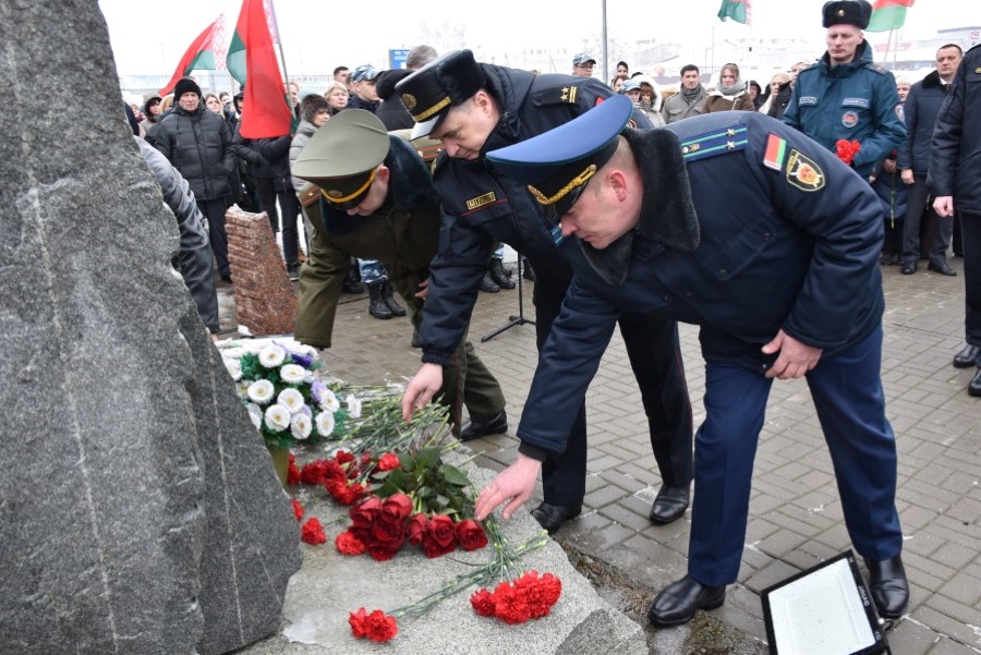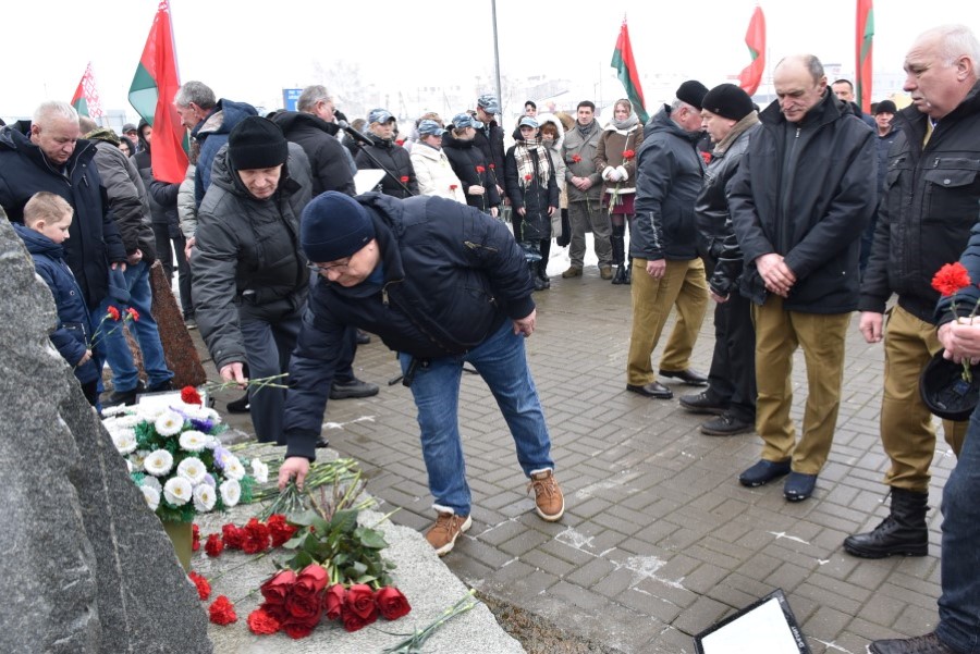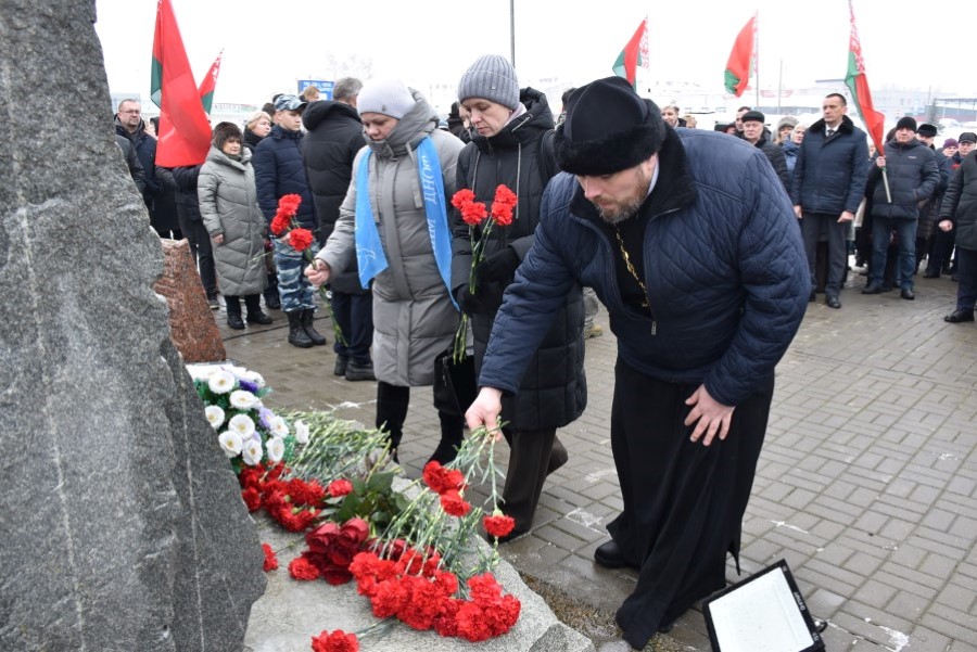 Глава района Андрей Соколовский, председатель районного Совета депутатов Владимир Трухан, представители районной власти , силового блока, общественных организаций, трудовых коллективов, молодёжи возложили цветы у памятного знака.