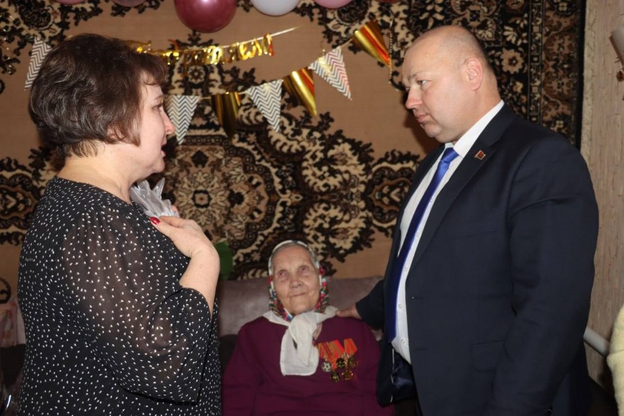 Для того, чтобы поздравить столетнего юбиляра, высказать ей слова своего восхищения ее жизнью, пожелать дальнейшего активного долголетия и крепкого здоровья, к Анастасии Ивановне на праздник заглянули председатель Березинского районного исполнительного комитета Андрей Соколовский, его заместитель Алеся Титова, председатель районного совета ветеранов Анатолий Зябко, сотрудники территориального центра социального обслуживания населения. Прибыли, как водится, не с пустыми руками: Благодарность, цветы, продуктовый набор и микроволновая печь! И, конечно же, в этот день звучали песни от нашего знаменитого музыканта Михаила Попруги.