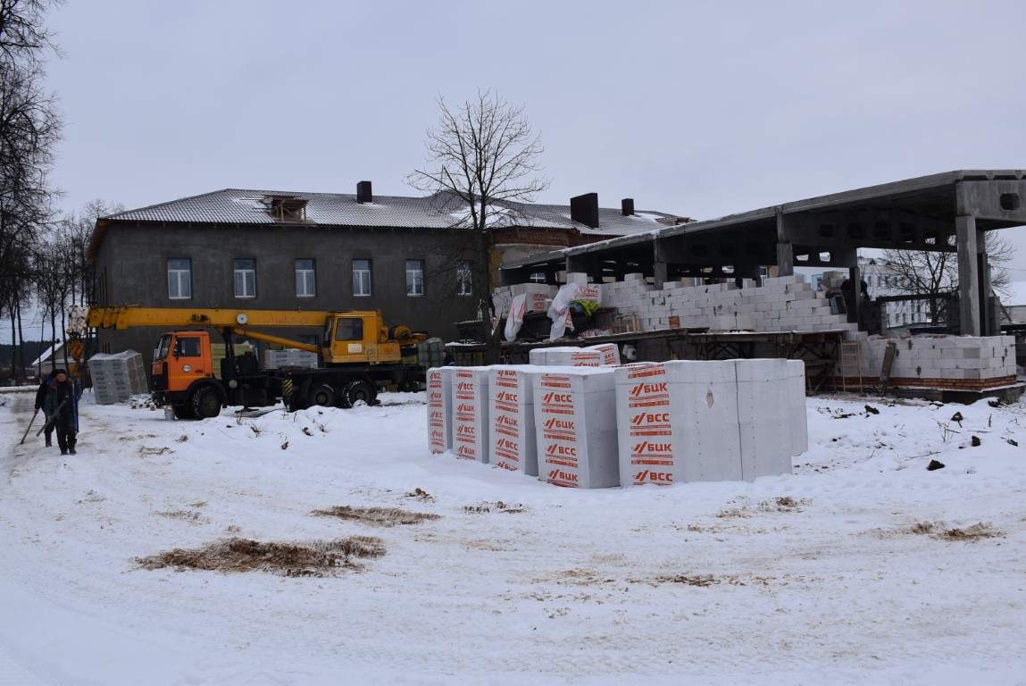 — Гэтым днямі тут штодзень працуе каля 50 чалавек, – расказвае прараб будаўнічага ўпраўлення №153 г. Барысава Аляксандр Ходзін. — Вядуцца ўнутраныя аддзелачныя работы будынка – малярныя, абліцовачныя, тынковачныя, устаноўка перагародак, кладка з блокаў сценак прыбудовы, дзе будзе танцпляцоўка, уцяпленне фасада. Будынак атрымаецца шматфункцыянальны. Работы вядуцца ў адпаведнасці з графікам і, спадзяюся, нараканняў на іх якасць не будзе.