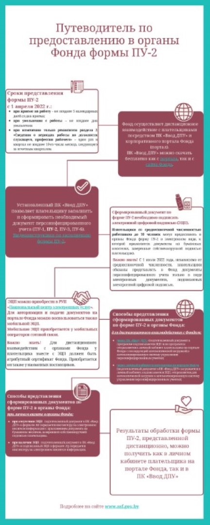 Ответ. С 1 апреля 2022 года вступают в силу принятые постановлением Правительства от 25 марта 2022 года № 166 изменения в порядок ведения персонифицированного учета. С указанной даты изменяются сроки представления плательщиками в Фонд формы ПУ-2 по застрахованным лицам, принятым на работу, либо уволенным с работы, начиная с 1 апреля 2022 года.
