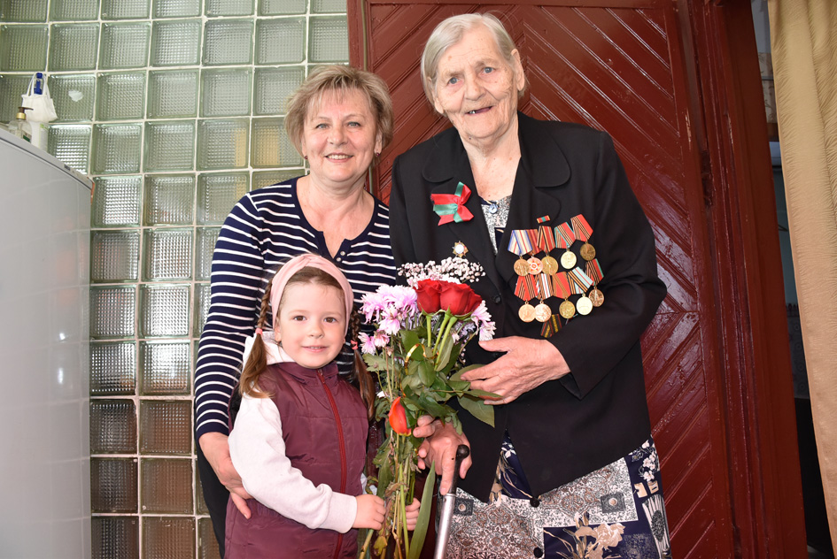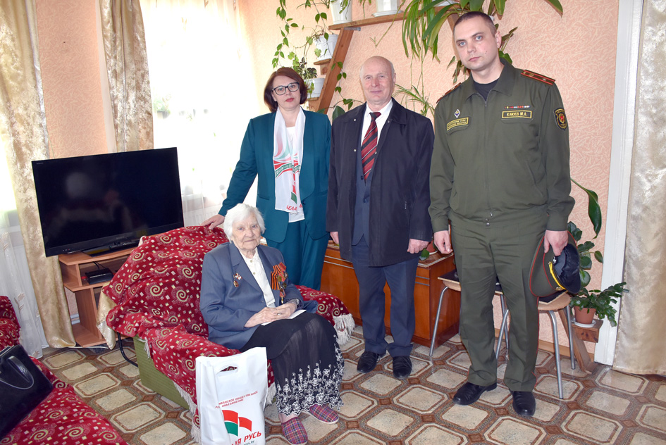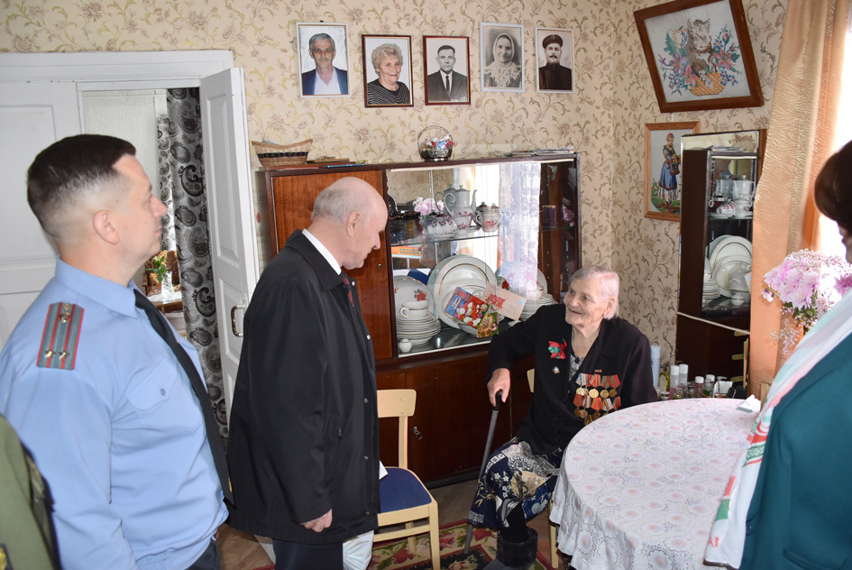 Са словамі падзякі за мір і святочнымі віншаваннямі да Дня Перамогі ўрачыстая дэлегацыя ад Бярэзінскага райвыканкама ў складзе старшыні Савета ветэранаў Анатолія Зябко, дырэктара Бярэзінскага ТЦСАН Алены Жолудзевай, начальніка абасобленай групы ваеннага камісарыята Чэрвеньскага і Бярэзінскага раёнаў Максіма Клюева, начальніка МОБ Бярэзінскага РАУС Паўла Шышкевіча, памочніка пракурора Кірыла Бондара, галоўнага спецыяліста аддзела ідэалагічнай работы, культуры і па справах моладзі Таццяны Бакун наведала ветэранаў Вялікай Айчыннай вайны Сафію Пятроўну Стасевіч, Мікалая Васільевіча Ульянава, Галіну Іванаўну Магілка, удзельніцу Вялікай Айчыннай вайны Ганну Лаўрэнцьеўну Собаль, ветэрана тылу Анастасію Іванаўну Касаткіну.