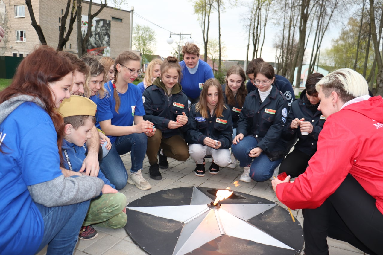 Ровно в 20.00 зажегся вечный огонь в Березино у памятника, погибшим во время Великой Отечественной войны.
