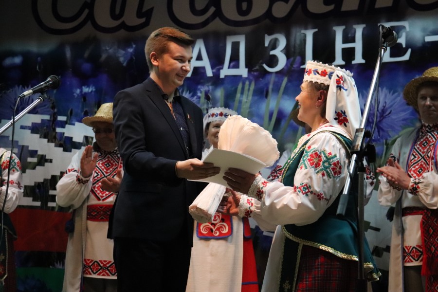 Віншаванні з падарункамі прывёз таксама і галоўны дырыжор Мінскага абласнога цэнтра народнай творчасці Юрый Крывашэй, ён жа адначасова і ўдзельнік народнага сямейнага ансамбля “Жывіца” з Пухавіч, які таксама выступіў на свяце.