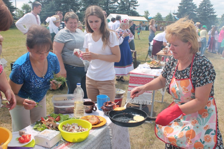 Сваё кулінарнае майстэрства паплаўскія гаспадырні цудоўна праявілі і падчас правядзення конкурсу па вырабе дранікаў: іх гатавалі і смажылі тут жа, на калодцы. Якасць дранікаў была высока ацэнена кампетэнтным журы і нашай дэлегацыі было прысужана ганаровае трэцяе месца. Акрамя таго па выніках мерапрыемства прадстаўнікі СУП “Здравушка-агра” былі адзначаны каштоўнымі падарункамі за арганізацыю работы падворку і выпечаны каравай.