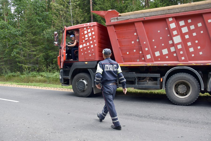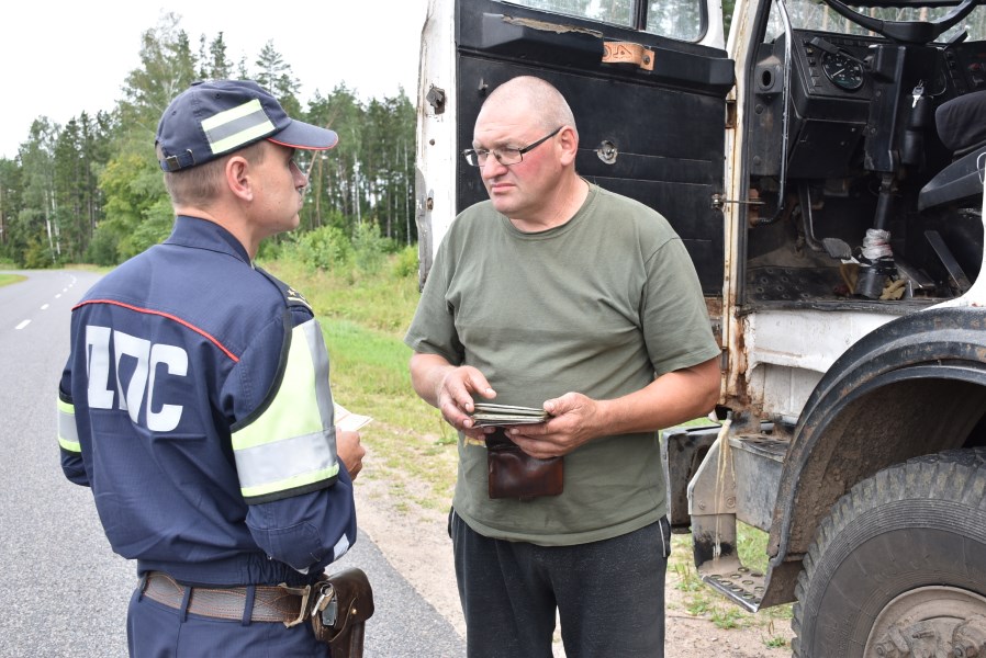 В этом убедились мы в ходе рейдового мероприятия со старшим инспектором отделения ГАИ Дмитрием Харитончиком. На проселочной дороге по направлению к агрогородку Микуличи его внимание привлек автомобиль «МАЗ». С большого прицепа на землю просыпалось несколько зернышек…