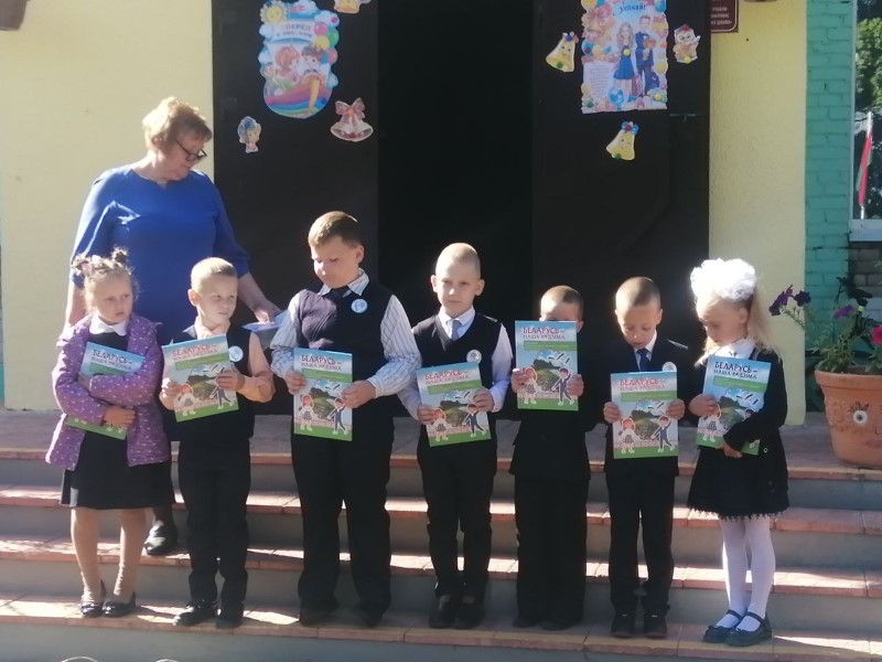 Ванькевич Д.Н. вручил первокласникам книги- подарки Президента Республики Беларусь. Успехов в учёбе первоклассникам пожелала их первый учитель И.И.Богомаз. О начале нового учебного года возвестил долгожданный первый школьный звонок. Мы поздравляем всех с Днём знаний!