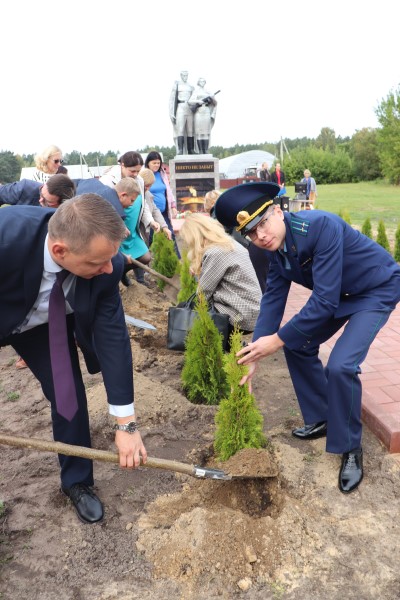 Затым госці свята ўсклалі кветкі да падножжа помніка. А завяршальным этапам мітынгу стала сумесная закладка алеі адзінства ў рамках акцыі “Мы разам – мы адзіныя!”