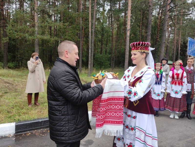 Нас приветствую с песнями, караваем на границе со Столбцовским районом Каравай принимает председатель Березинского райиспокома Денис Дишук