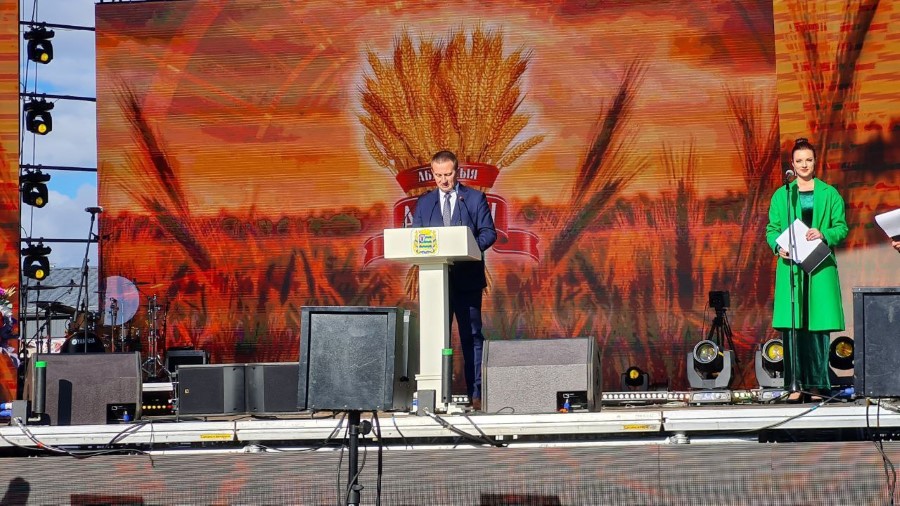 На главной сцене проходит торжественная церемония награждения победителей областного соревнования по уборке урожая 2022