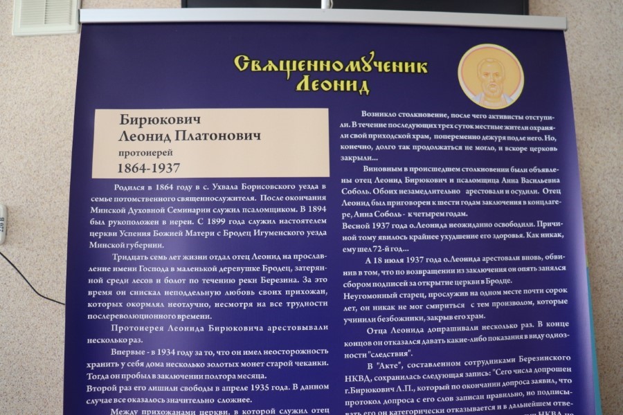 Название выставки говорит за себя: здесь представлены священники, служившие в церквях на Березинщине в непростые времена, и подвергнутые гонениям за веру в 30-е годы.