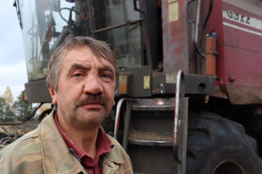Тут жа на палетку сустрэлі і яшчэ аднаго героя жніва – Аляксандра Крука. Сёння ён на сваім вялікім МАЗе таксама на адвозцы ўраджаю.