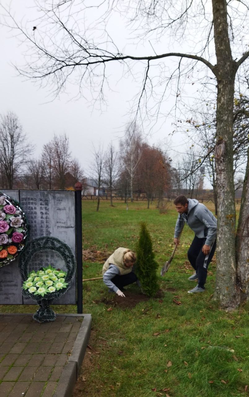Навели порядок около памятника погибшим воинам и высадили около него туи.