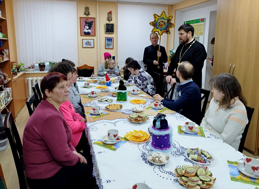 В этот день в отделении дневного пребывания для инвалидов царила атмосфера любви и тепла. Рождественский колокольный звон возвестил о начале мероприятия. С поздравлениями со светлым праздником к ребятам обратился благочинный Березинского округа, настоятель Свято-Никольского храма протоиерей Илья Гончарук.