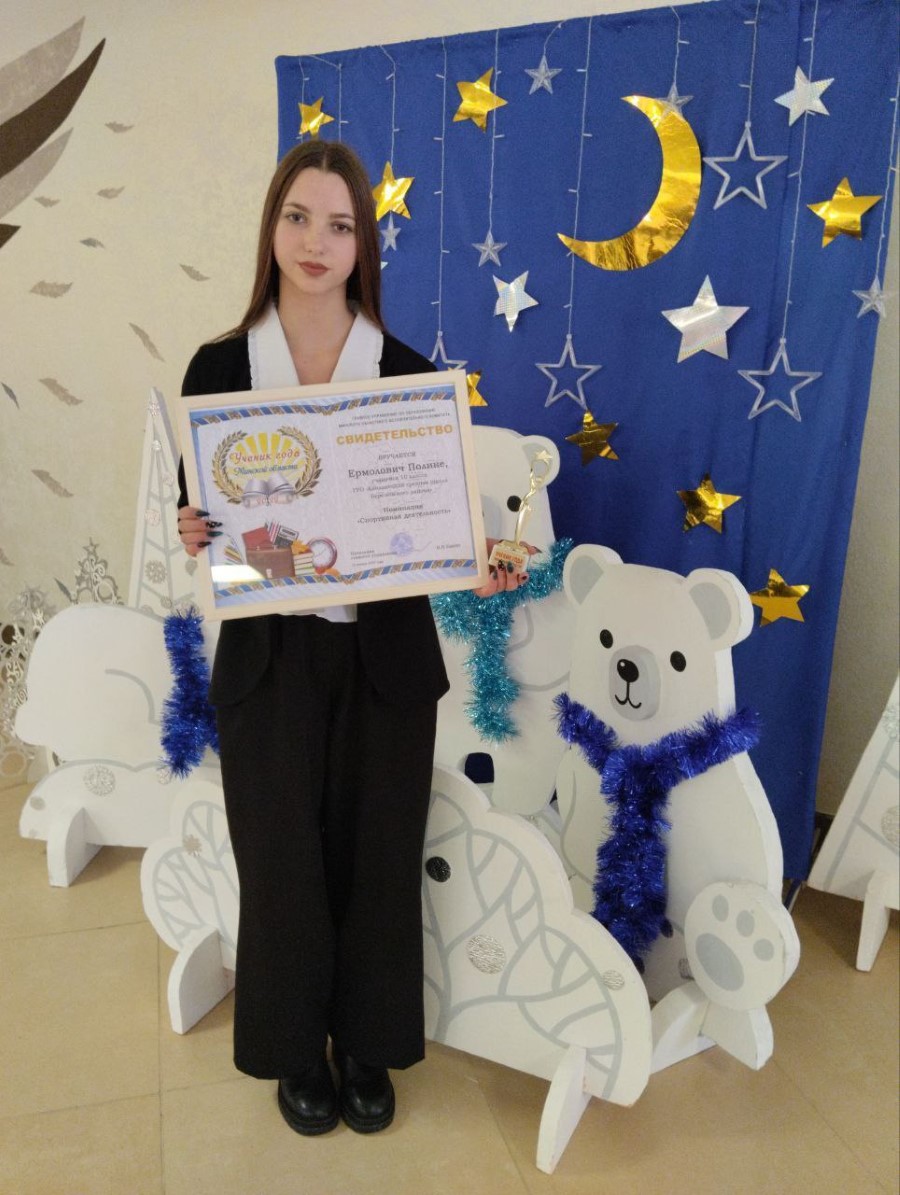 Особенно приятно, что среди лучших учащихся Минщины - Полина Ермолович, учащаяся 10 класса Капланецкой средней школы. За свои многочисленные спортивные достижения Полина признана лучшей в номинации "Спортивная деятельность".