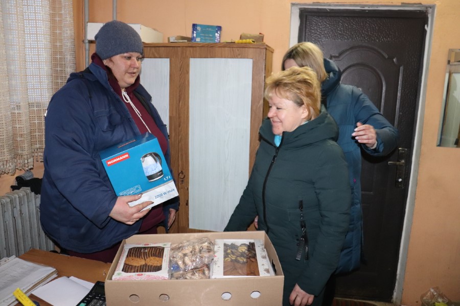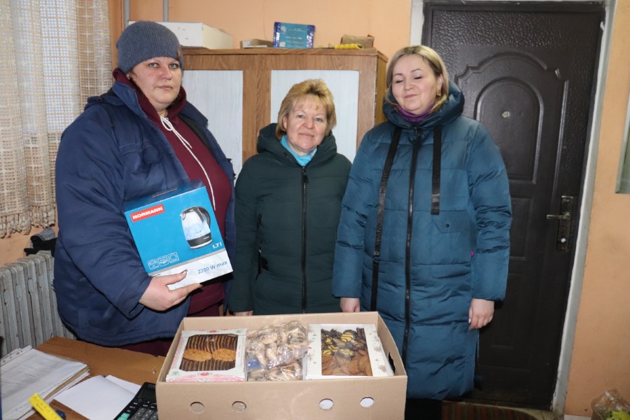 Ну а чтобы слова подкрепить делом, гости привезли в каждый коллектив фермы необходимые зимой подарки – новые электрочайники и сладкие сувениры.