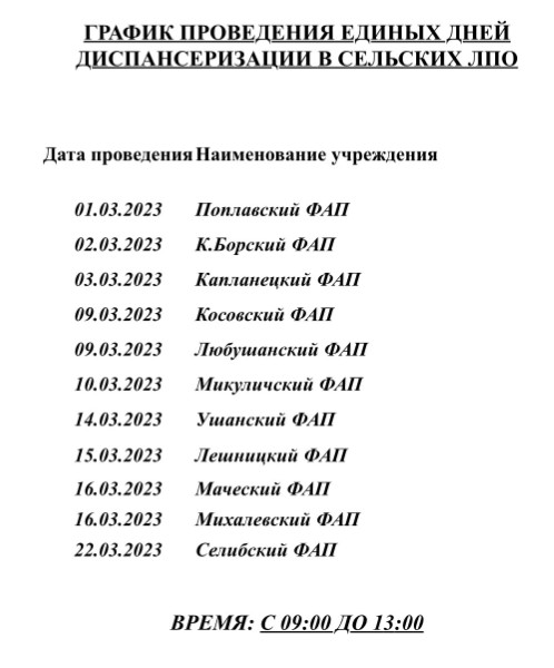 НАПОМИНАЕМ‼️ График диспансеризации в сельских ЛПО‼️