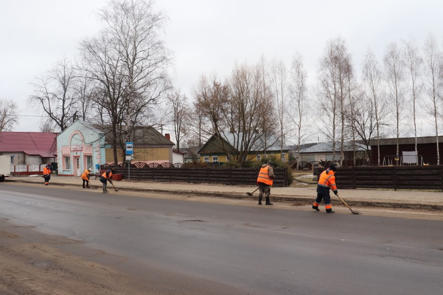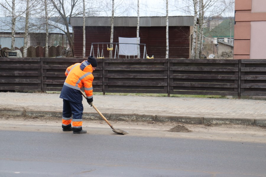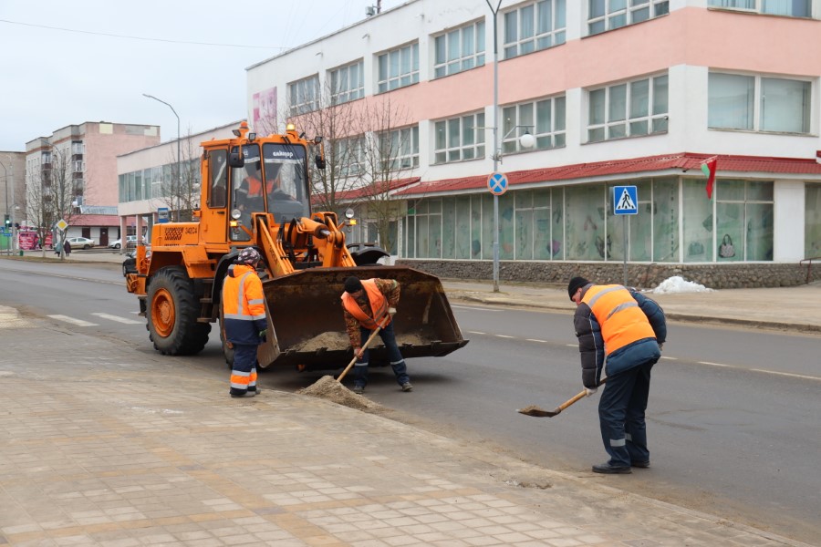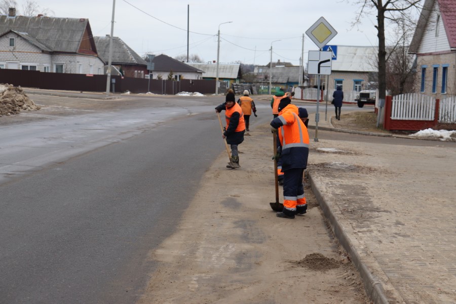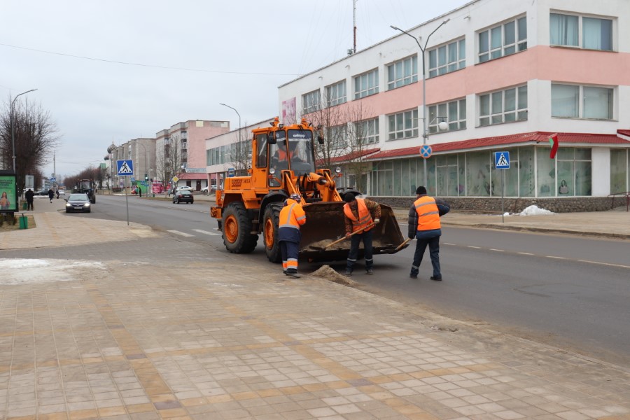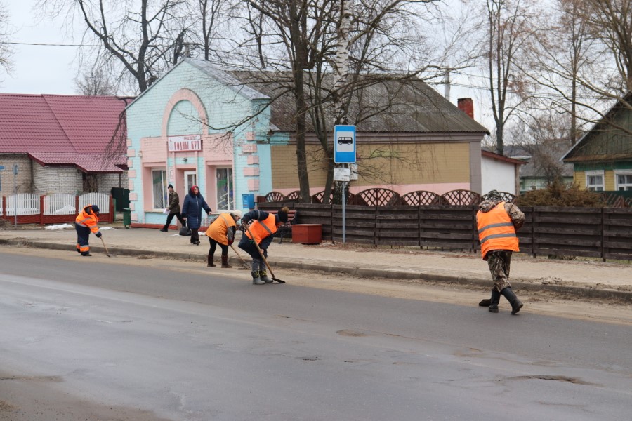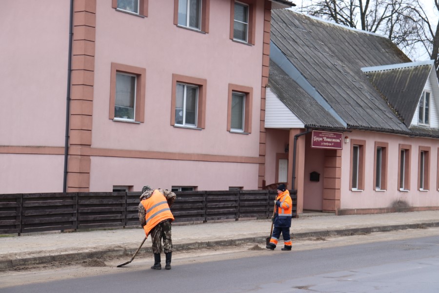 Тем временем в городе с утра идёт уборка улиц. Работники Березинского ЖКХ дружно и слаженно взялись за дело. Календарная весна уже началась, не за горами и настоящее потепление.
