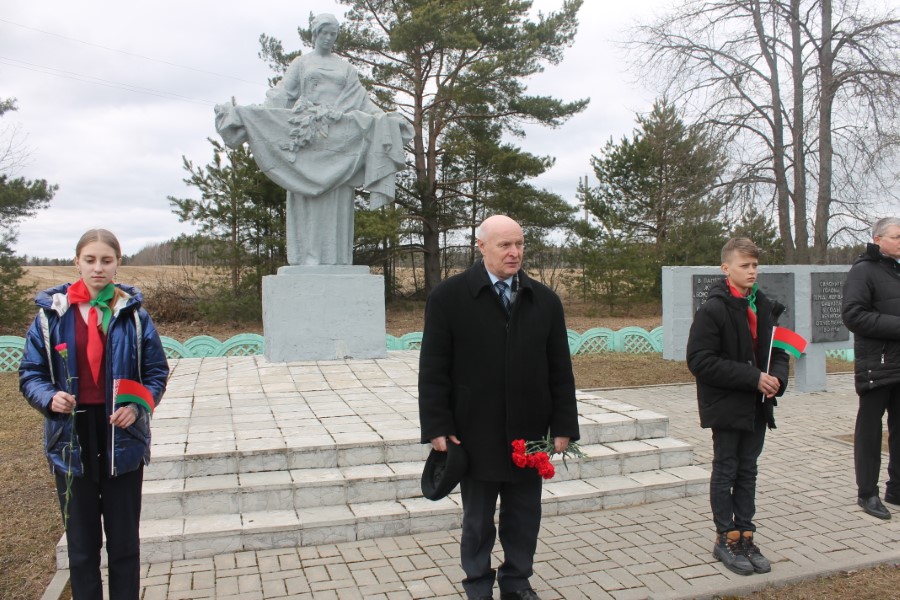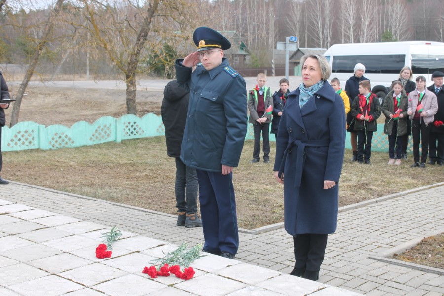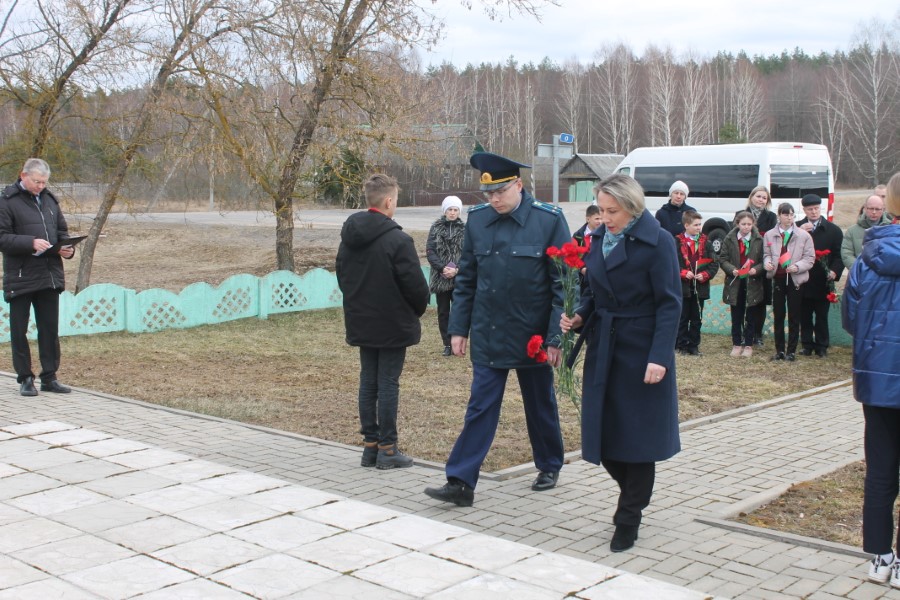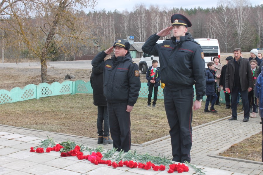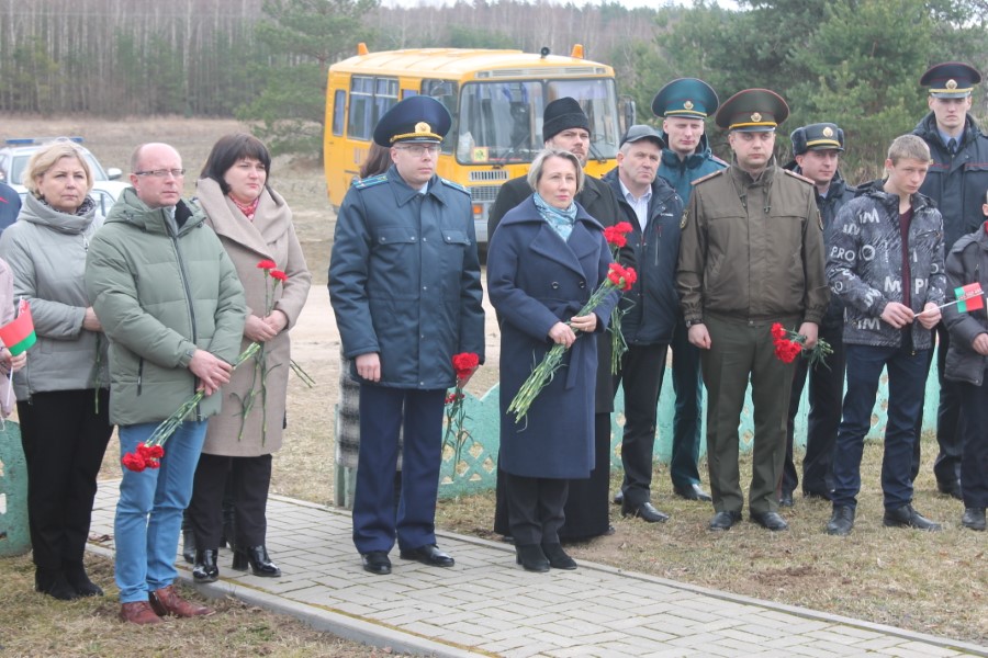 - Дорогие друзья! Сегодня наша республика чтит память тех, кто пал жертвой немецко-фашистских захватчиков. Восемьдесят лет прошло с тех пор как немецко-фашистские захватчики полностью уничтожили деревню Хатынь. Всего таких деревень, которые были уничтожены вместе с жителями и не возродились – 149. Каждый третий житель Беларуси отдал жизнь в годы Великой Отечественной войны. И мы собрались здесь, чтобы почтить память жертв фашизма, и чтобы помнить об этих трагических событиях. И чтобы помнила наша молодёжь. Потому что сегодня в таких странах как страны Прибалтики и Украины героями становятся те, кто уничтожал мирных людей, не щадя детей, стариков, женщин. Мы должны помнить горькие, тяжёлые страницы истории нашей Родины. Хочется сказать спасибо прокуратуре Республики Беларусь, по инициативе которой проводятся большие поисковые мероприятия, чтобы увековечить память погибших.