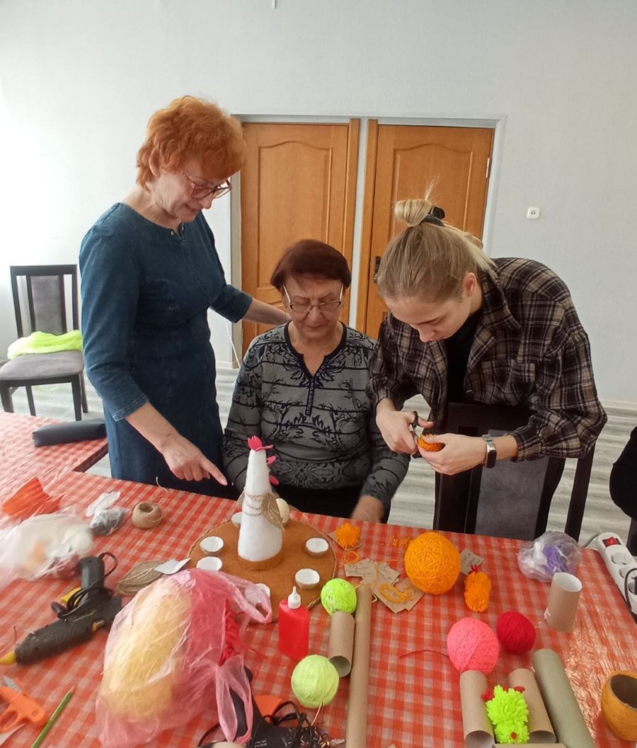 В преддверии Великой Пасхи М.А. Булойчик, Е.М.Строк, А.Я. Сыроквашко, А.П. Зинькевич, Т. С. Альшевская приняли активное участие в мастер-классе по изготовлению оригинальных и простых пасхальных поделок из подручных средств под руководством руководителя народного клуба мастеров В. А. Пытляк и методиста отдела народных художественных ремёсел и выставочной деятельности Дианы Фёдоровой.