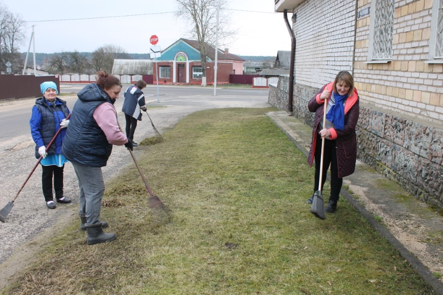 А сёння таксама выйшлі з гэтай жа мэтай, каб далучыцца да рэспубліканскага суботніка. Акрамя таго, у самім памяшканні ідзе рамонт. Так што клапоцімся не толькі пра свойц знешні выгляд, а і пра ўтульнасць у цэлым.