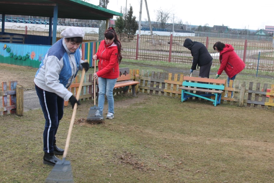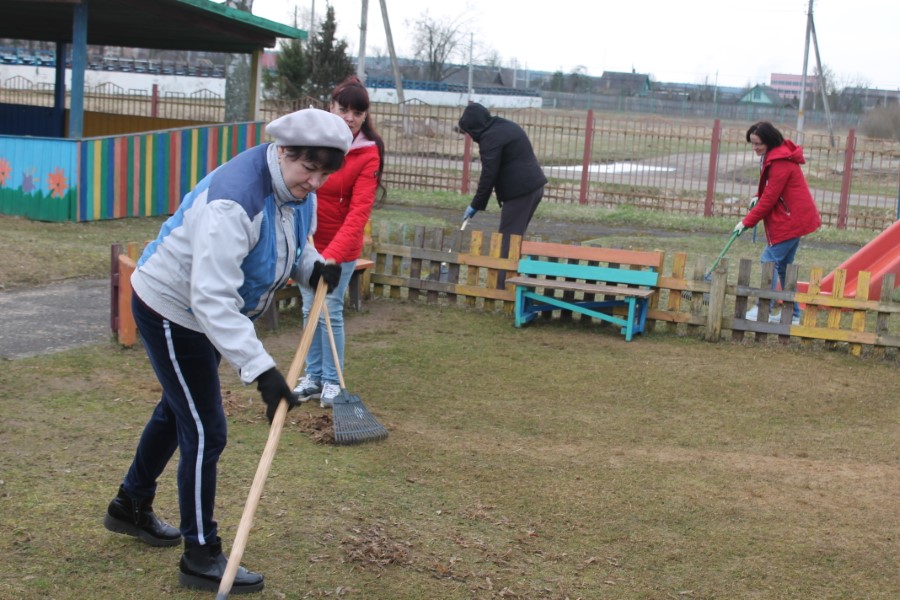 Кіпела работа па навядзенні парадку і вакол кожнай дашкольнай навучальнай установы. Работы тут хапала акрамя зграбання лісця і леташняй травы, бо на тэрыторыі садкоў шмат дзіцячых пляцовак, гульнявых куточкаў, клумб, дрэўцаў і кустоў, якія таксама маюць патрэбу ў доглядзе пасля зімовага сезона.