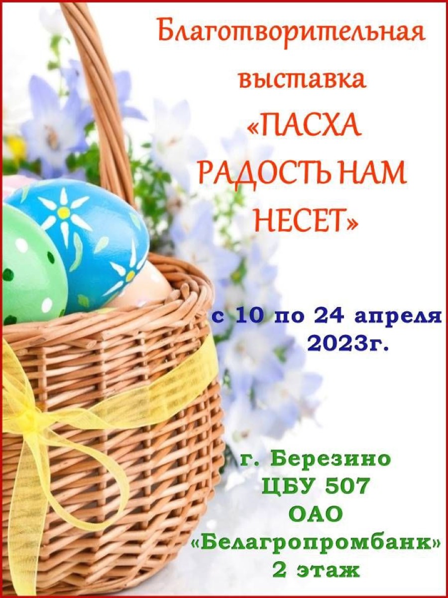 На ней представлены работы, выполненные руками посетителей отделения социальной реабилитации, абилитации инвалидов ГУ «Березинский территориальный центр социального обслуживания населения». Все желающие могут посетить выставку и приобрести пасхальные сувениры.