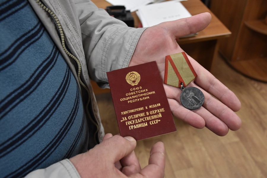 Нашым першым экспанатам выставы, прысвечанай 35-годдзю вывада савецкіх войск з Афганістана, стаў медаль “За адзнаку ў ахове дзяржаўнай граніцы СССР”. Ён дагэтуль беражліва захоўваецца ў сямейнай скарбонцы Алены і Сяргея Гліннікаў.