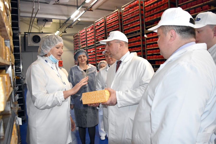 Министр сельского хозяйства посетил и производство, посмотрел, как делают сыры, масло и другую продукцию.