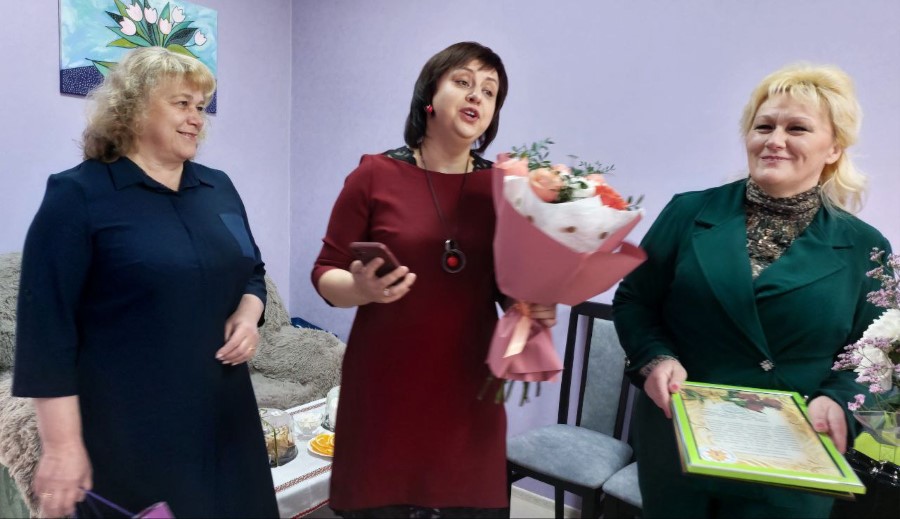 С музыкальным поздравлением, цветами и грамотой Минской городской организации работников культуры, спорта и информации для именинницы, к тому же юбиляра, Инны Хващевской пришли сегодня в Березинский районный центр ремёсел начальник отдела идеологической работы, культуры и по делам молодежи Татьяна Лученок, председатель районной профсоюзной организации работников культуры Наталья Дубовик, директор центральной районной библиотеки Наталья Маевская.