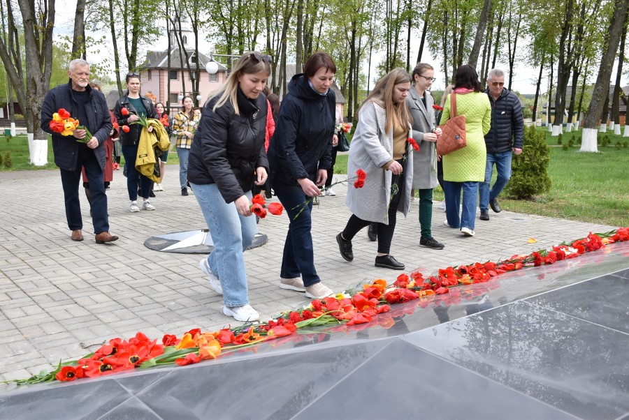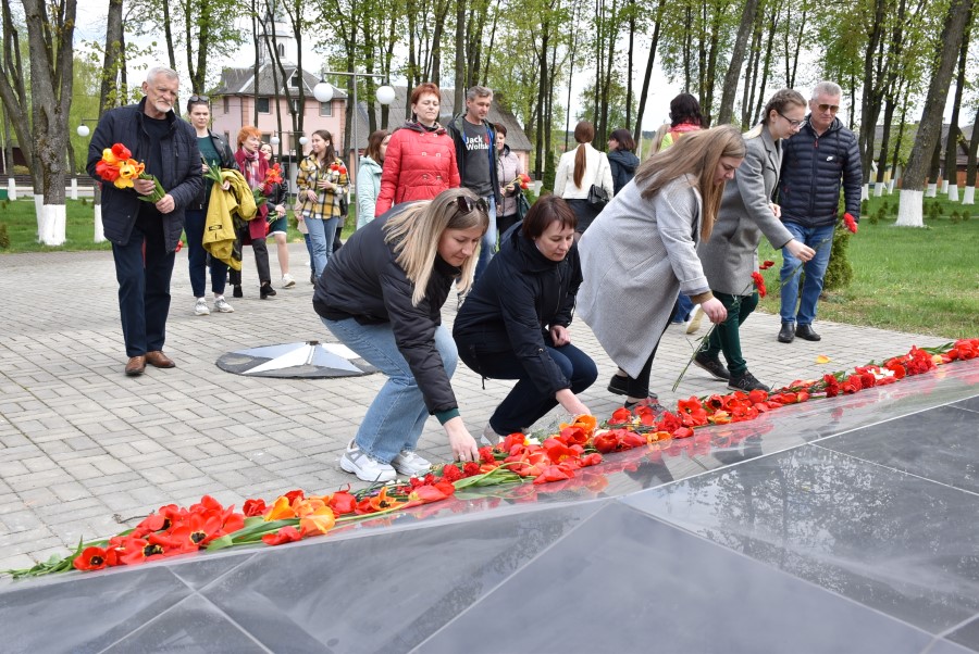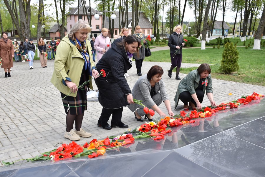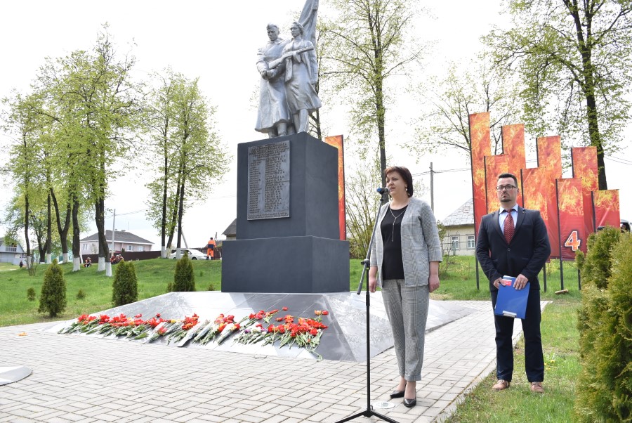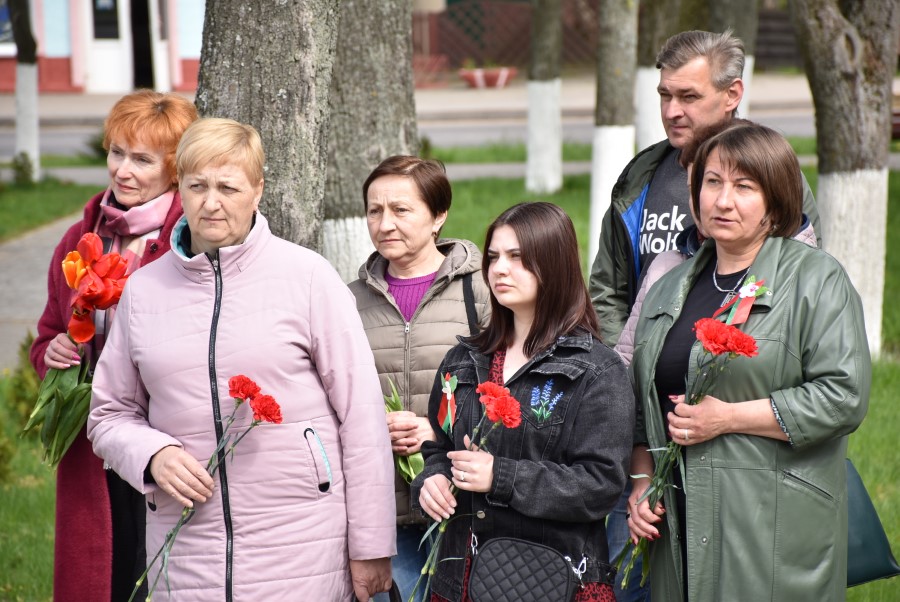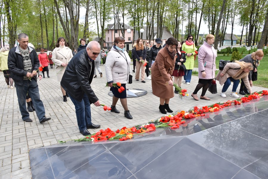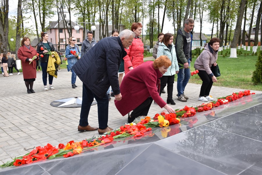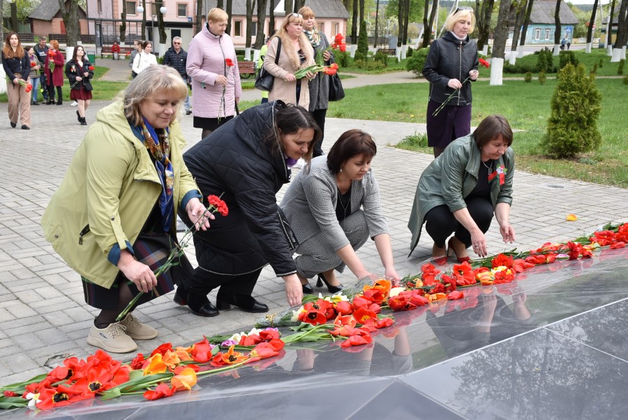 Работники культуры во главе с начальником отдела идеологической работы, культуры и по делам молодежи Татьяной Лученок склонили головы у подножия памятника во славу всех воинов, отдавших свои жизни за свою Родину, за мирное небо для своих потомков.
