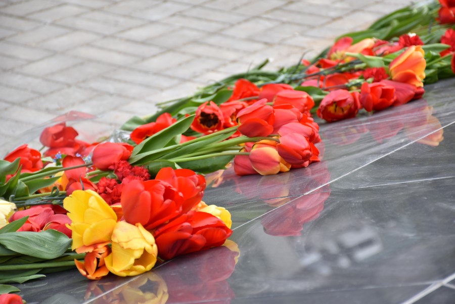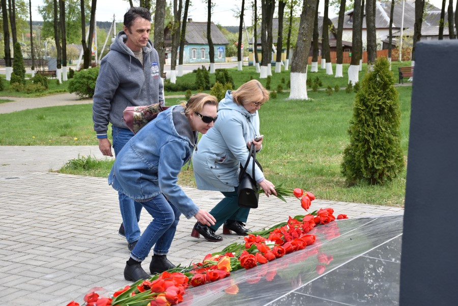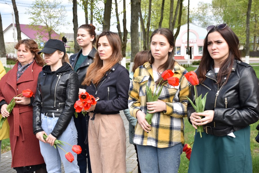 Минутой молчания присутствующие почтили память погибших. К памятнику были возложены цветы.